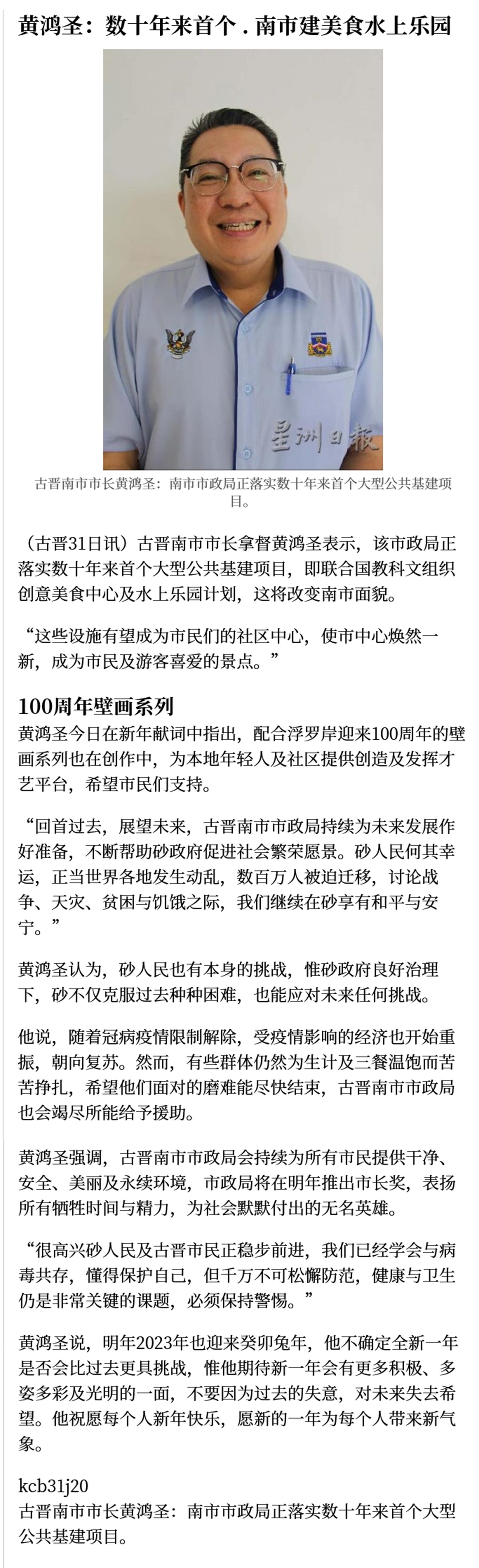 黄鸿圣:数十年来首个 南市建美食水上乐园