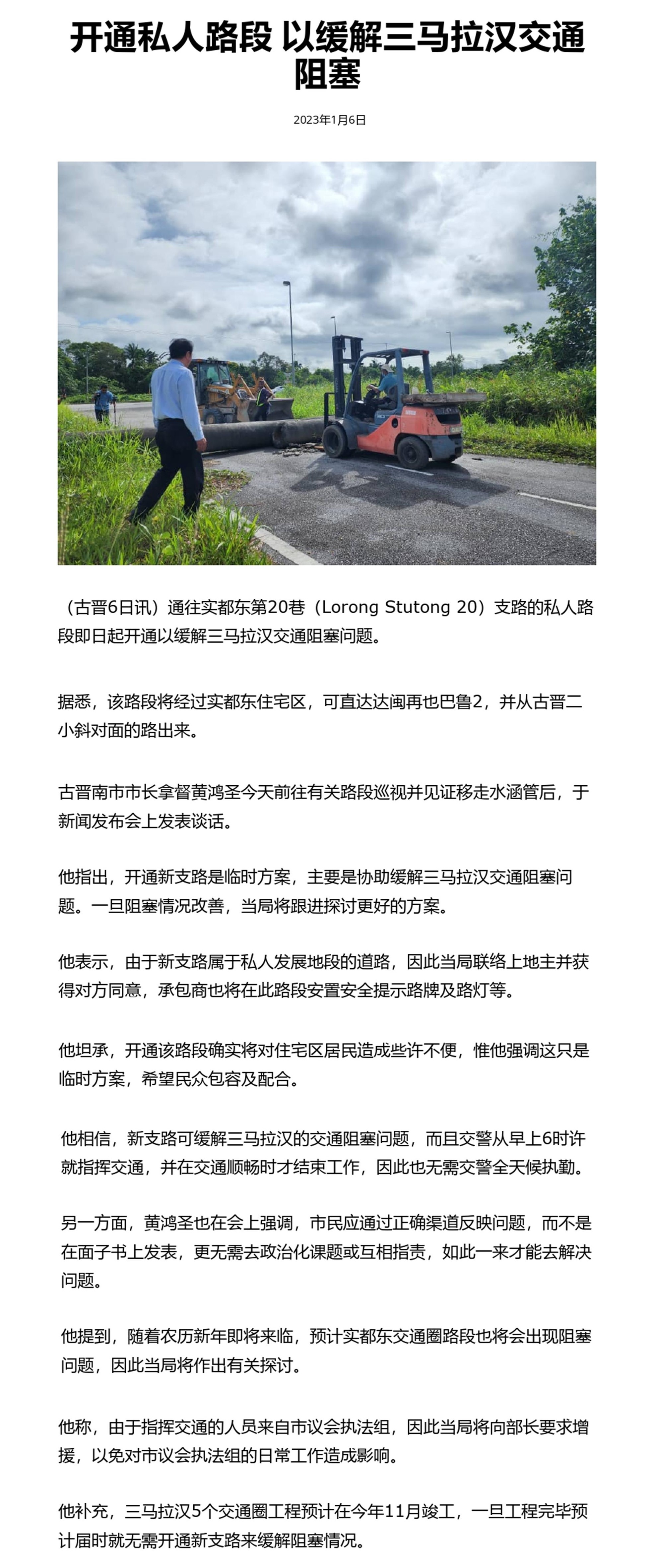 开通私人路段 以缓解三马拉汉交通阻塞