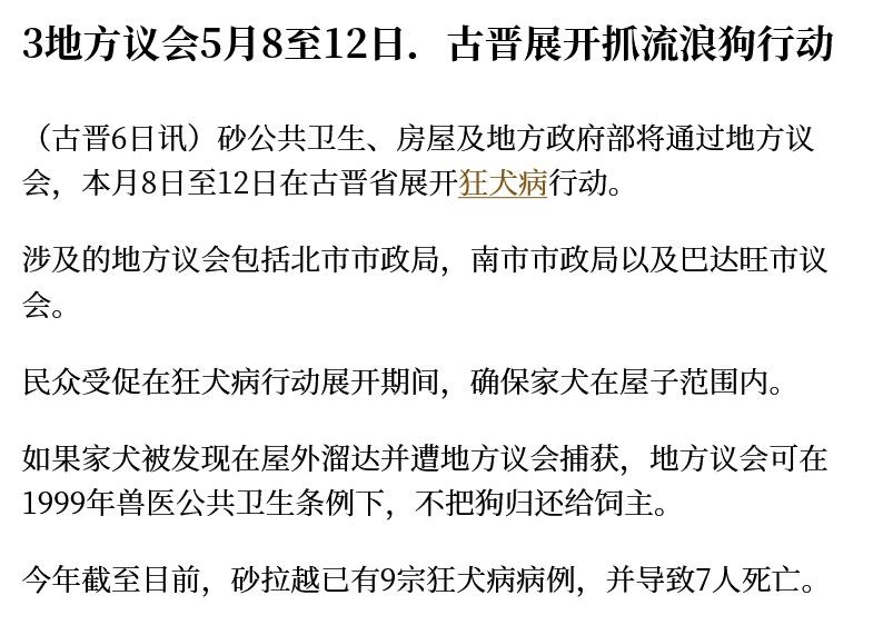 3地方议会5月8至12日 古晋展开抓流浪狗行动