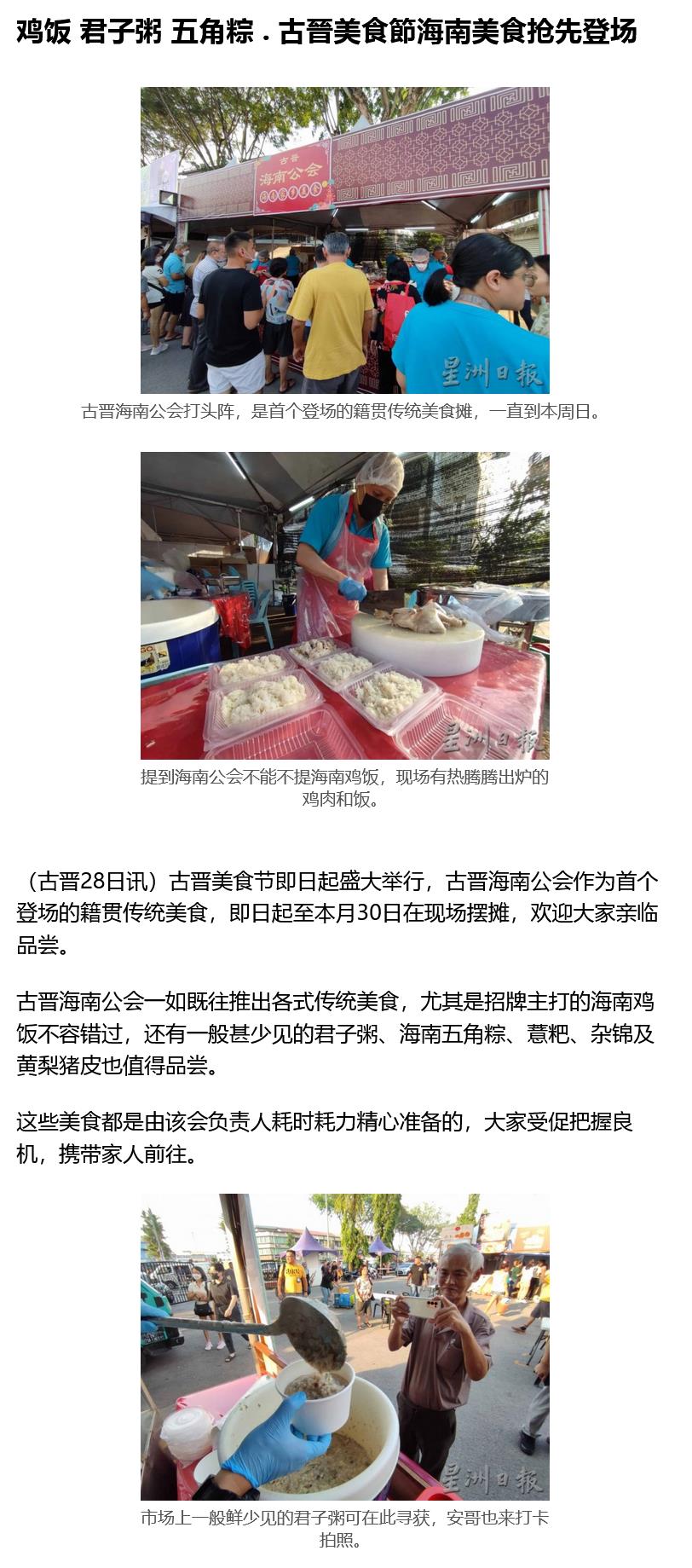 鸡饭 君子粥 五角粽 古晉美食節海南美食抢先登场