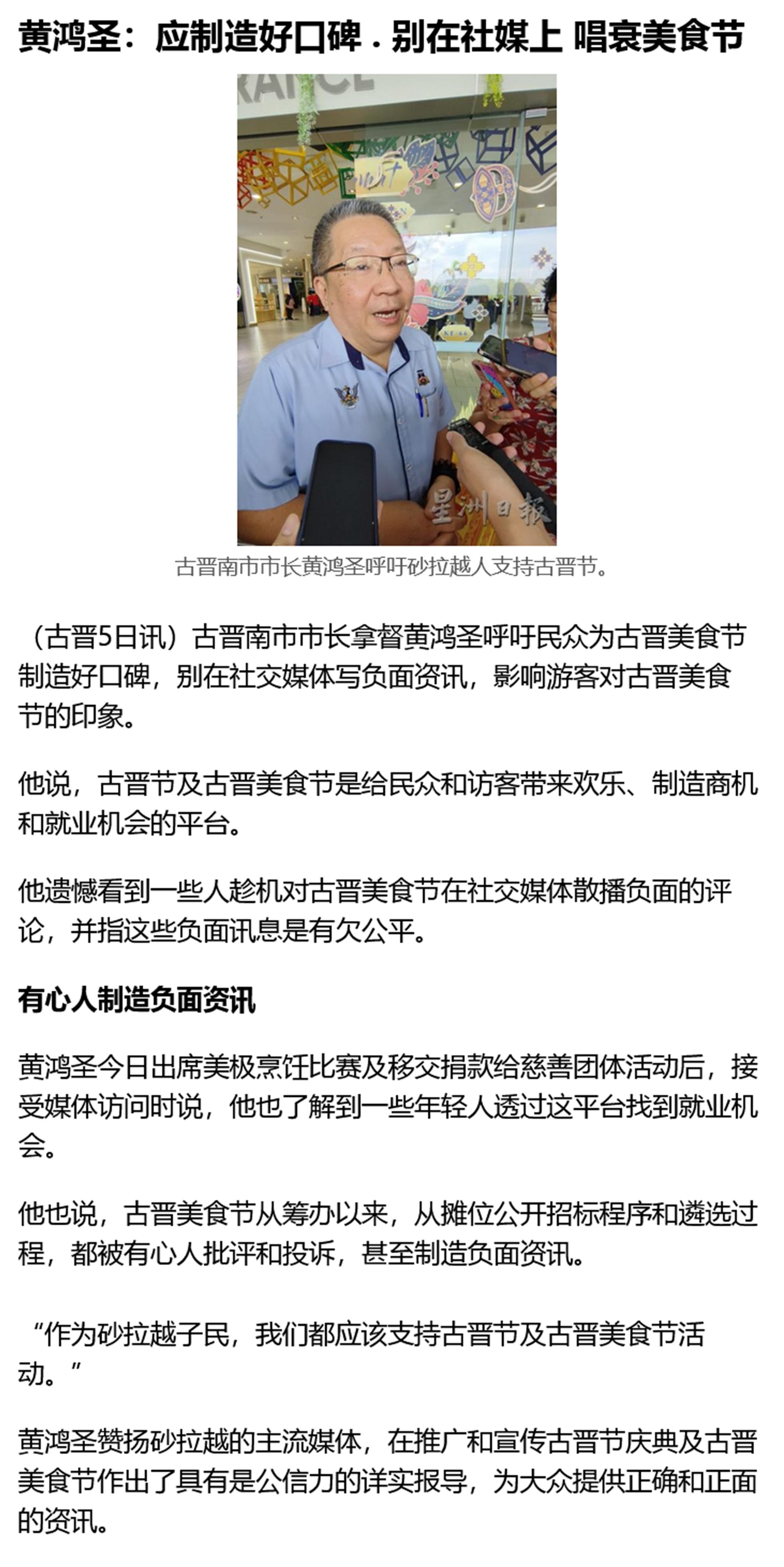 黄鸿圣:应制造好口碑 别在社媒上 唱衰美食节