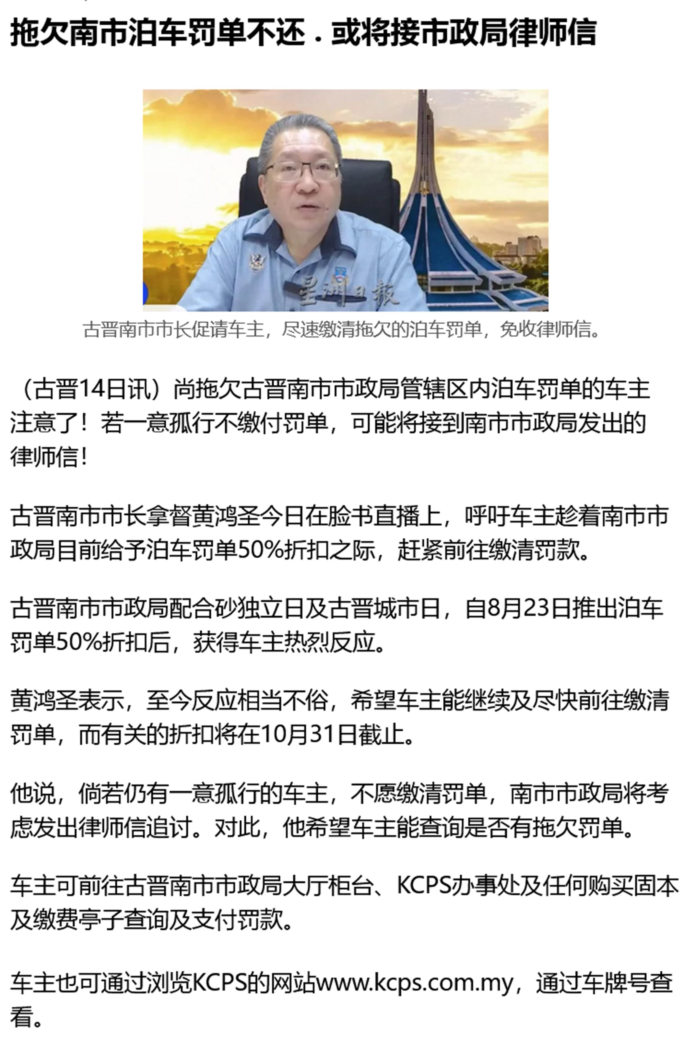 拖欠南市泊车罚单不还 或将接市政局律师信