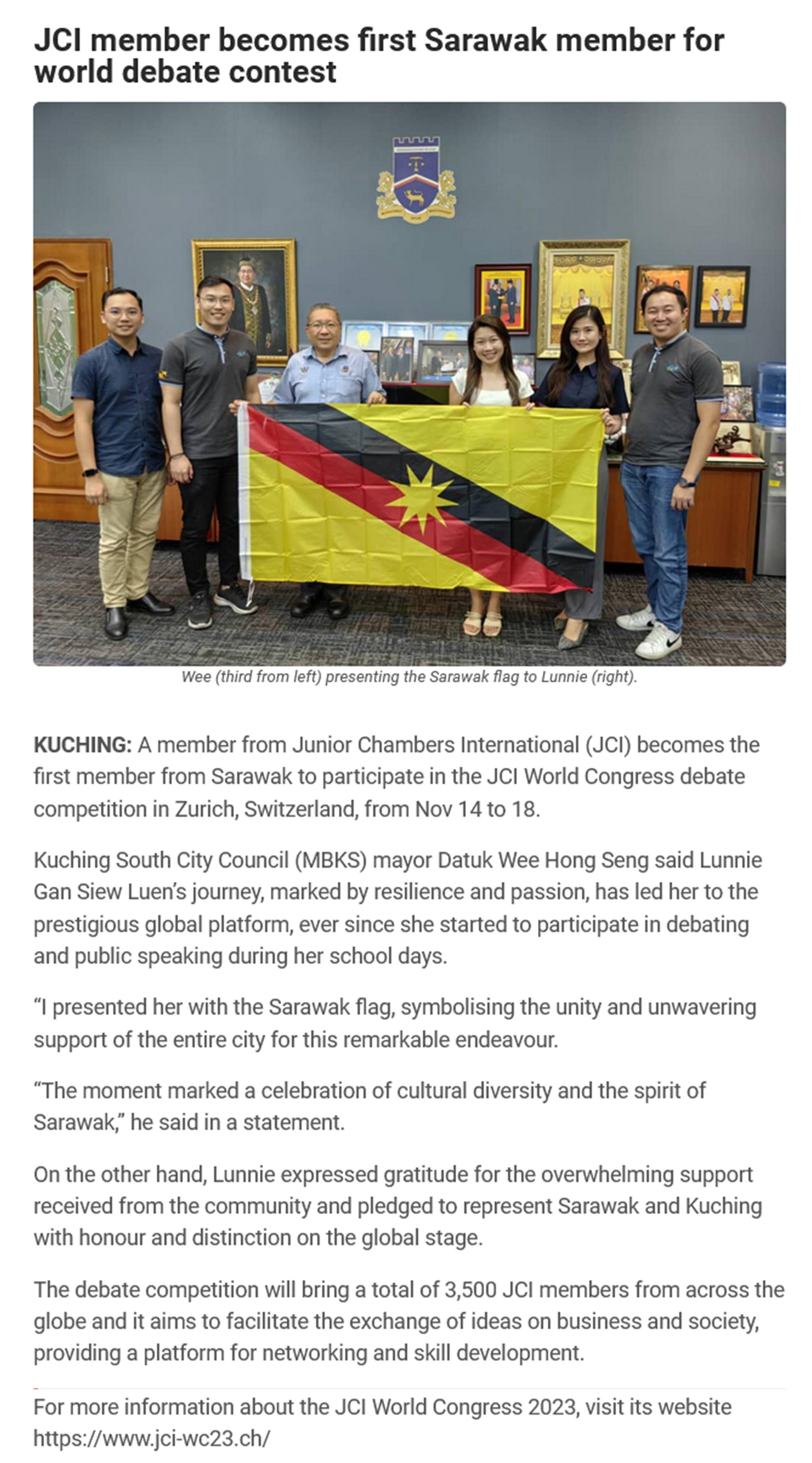 JCI member becomes first Sarawak member for world debate contest
