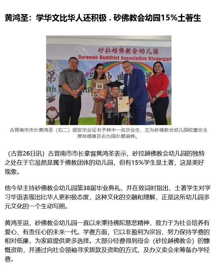 黄鸿圣:学华文比华人还积极 砂佛教会幼园15%土著生