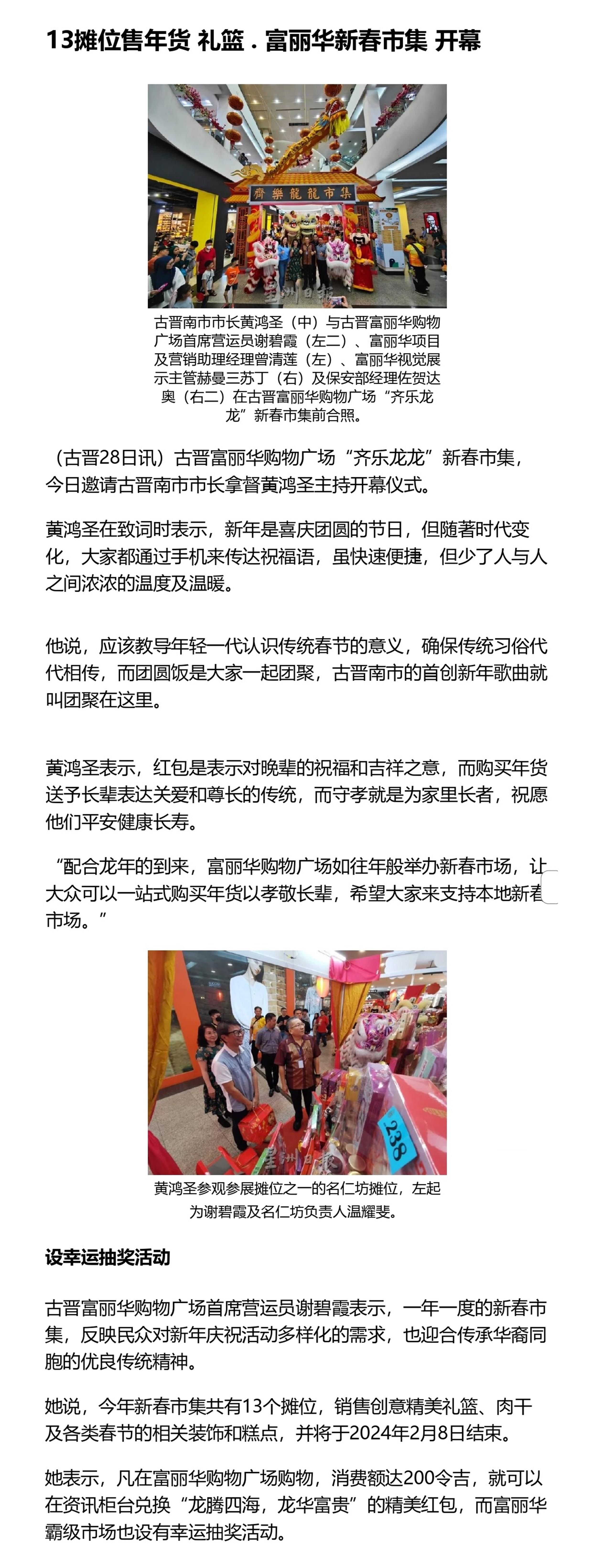13摊位售年货 礼篮 . 富丽华新春市集 开幕