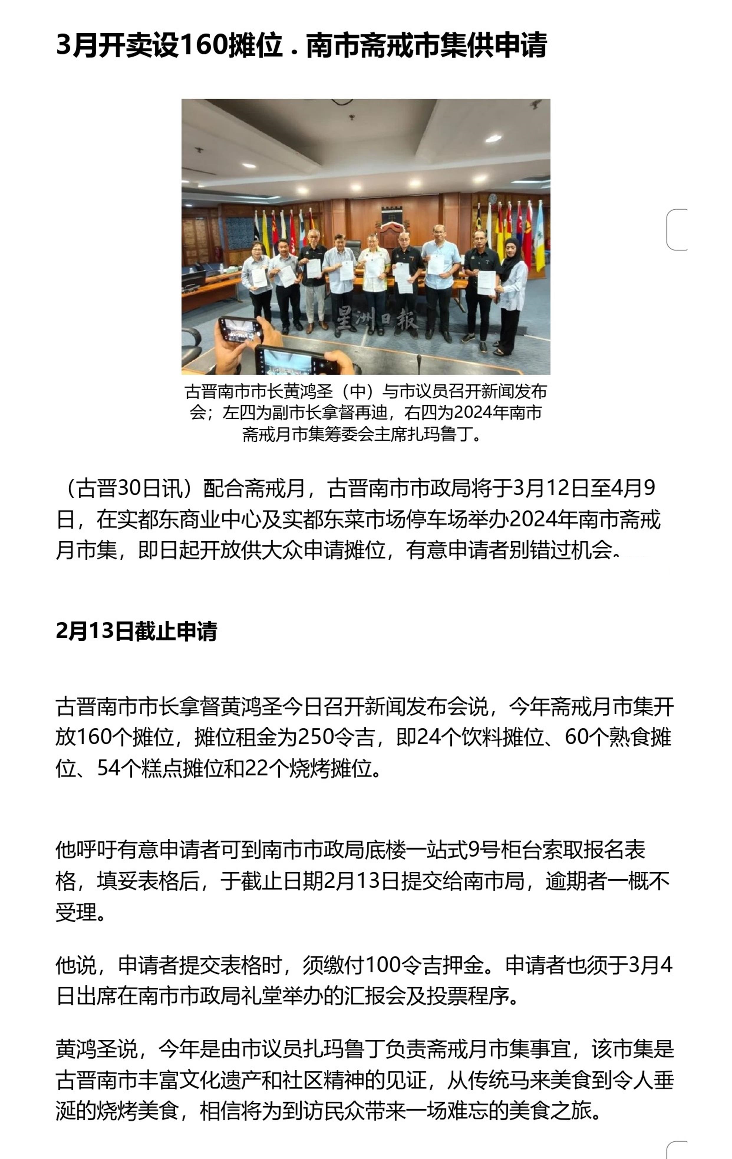 3月开卖设160摊位 . 南市斋戒市集供申请
