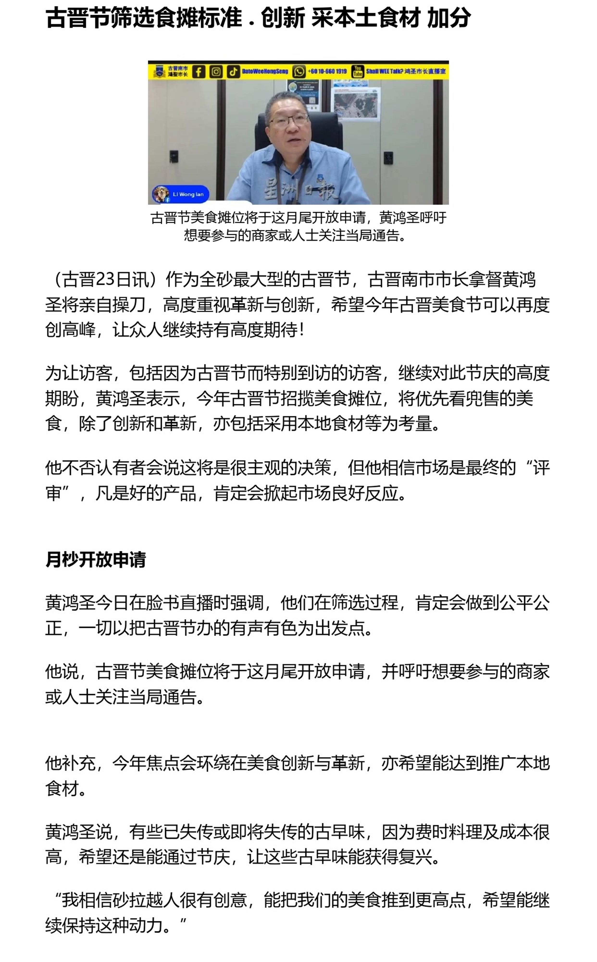 古晋节筛选食摊标准 . 创新 采本土食材 加分