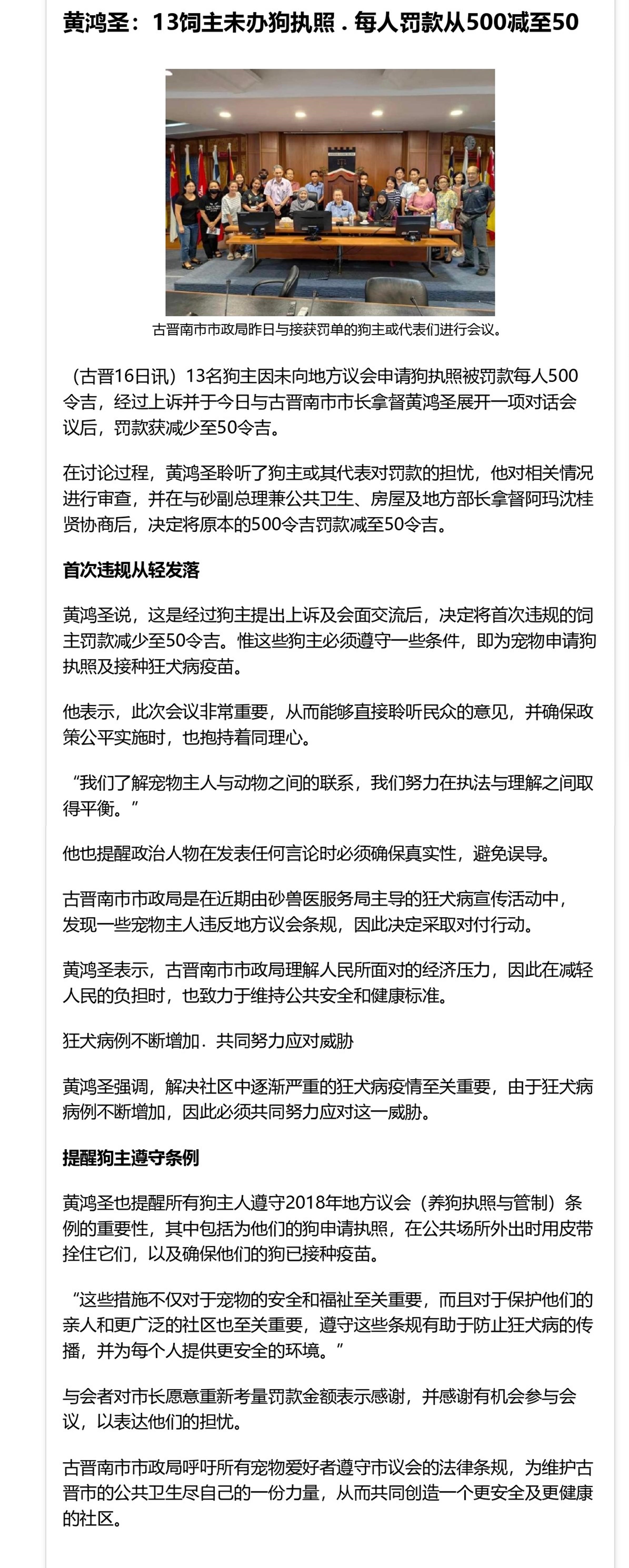 黄鸿圣:13饲主未办狗执照 . 每人罚款从500减至50