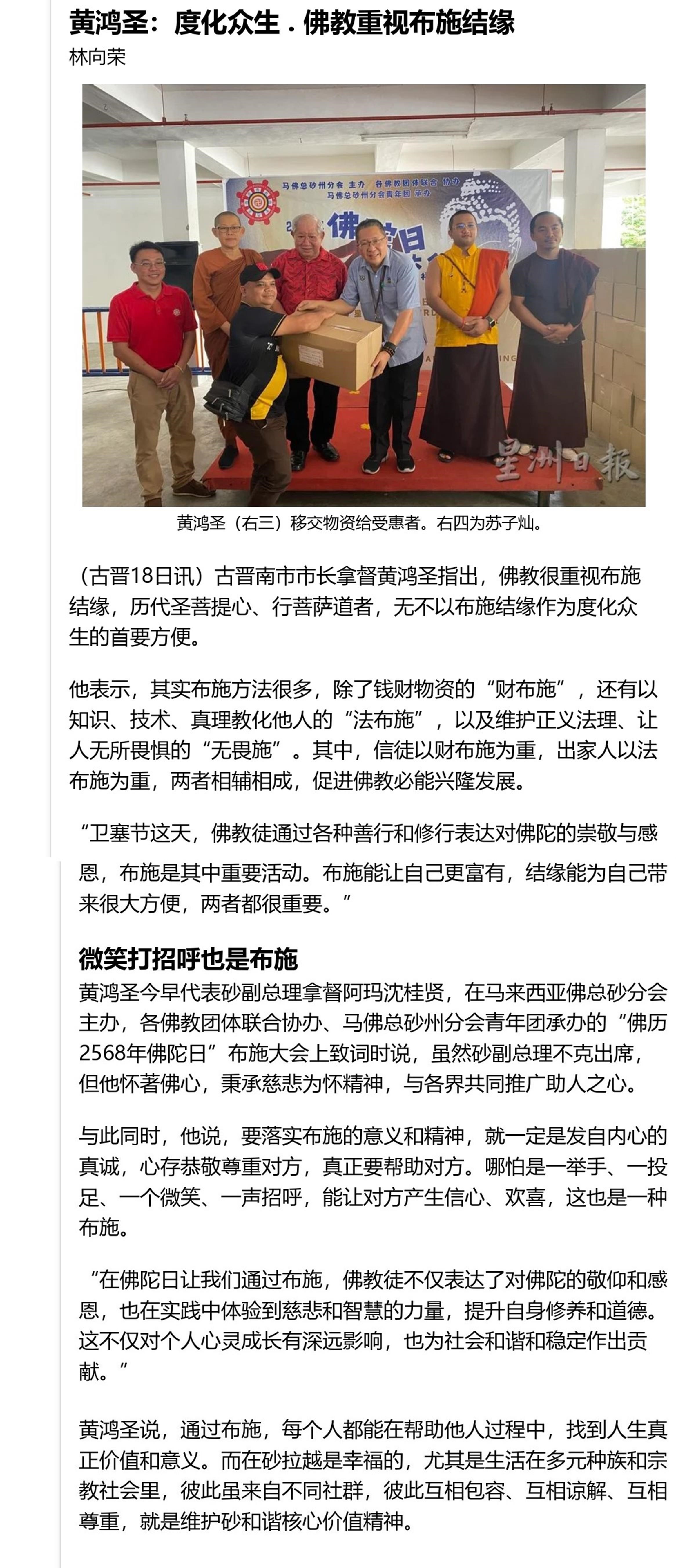 黄鸿圣:度化众生 . 佛教重视布施结缘