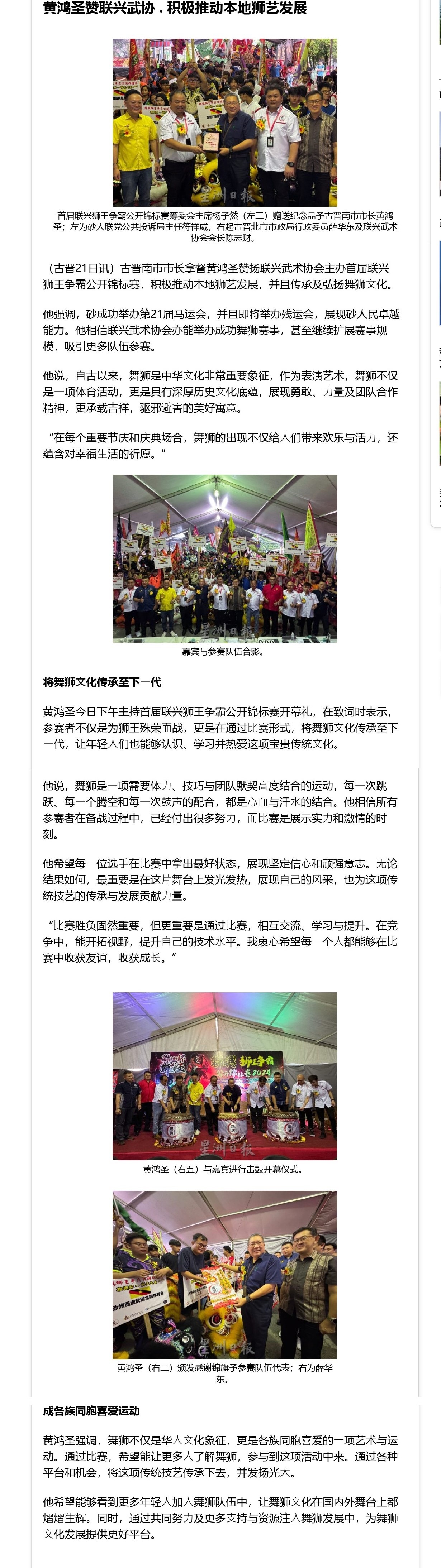 黄鸿圣赞联兴武协 . 积极推动本地狮艺发展