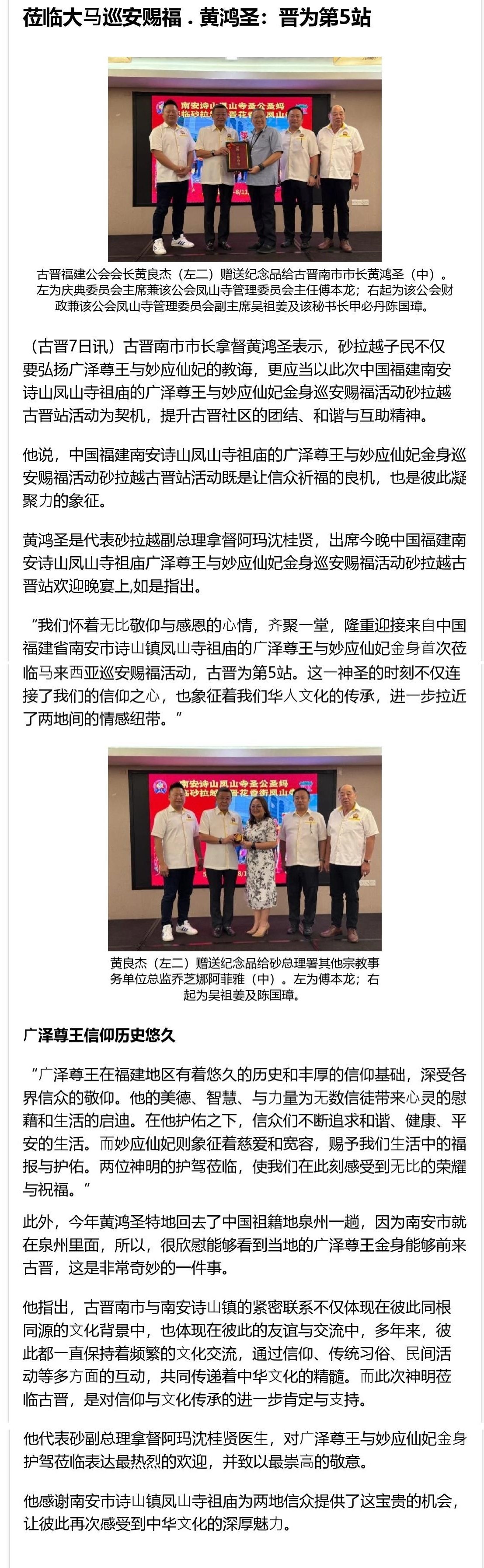 莅临大⻢巡安赐福 . 黄鸿圣:晋为第5站
