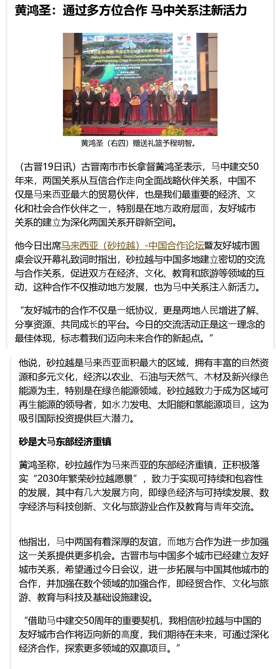 黄鸿圣:通过多方位合作 马中关系注新活力