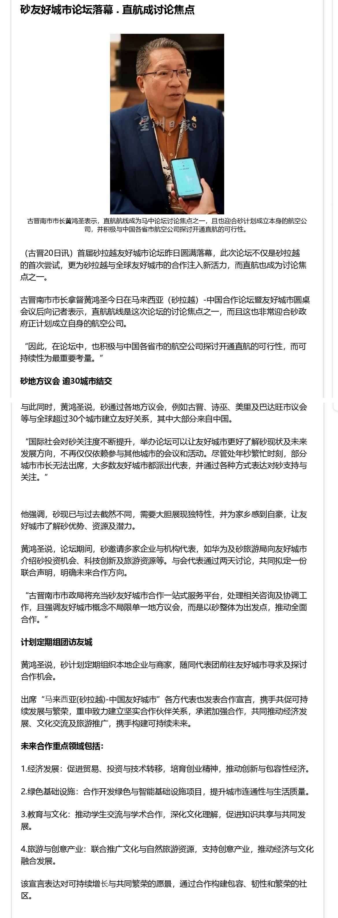 砂友好城市论坛落幕 . 直航成讨论焦点