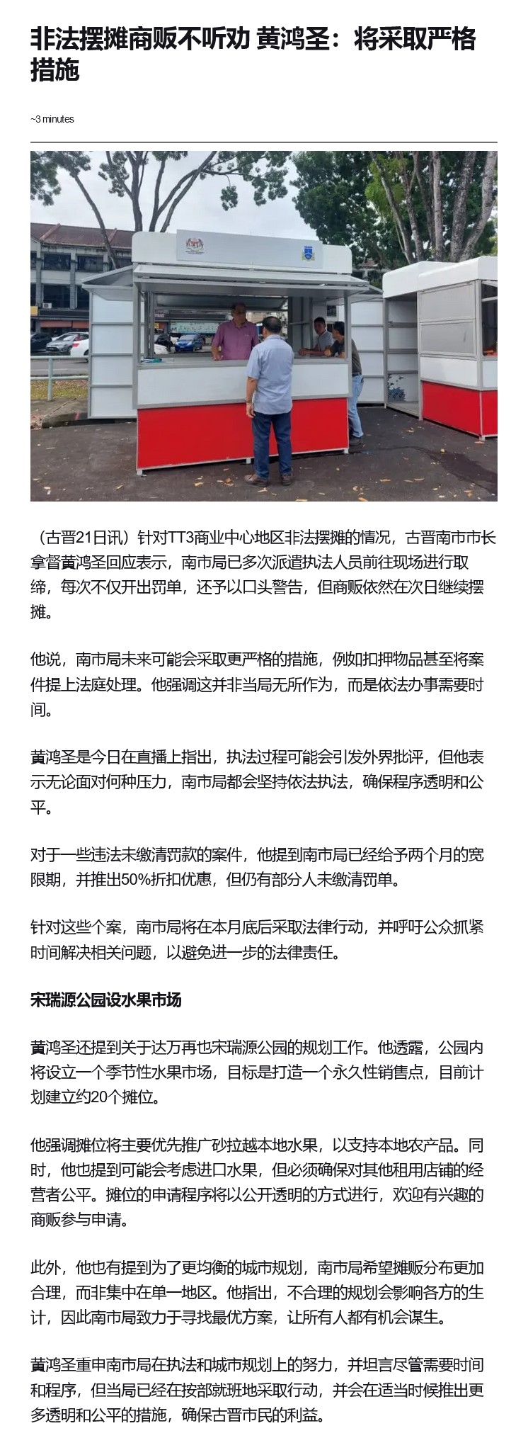 非法摆摊商贩不听劝 黄鸿圣:将采取严格措施