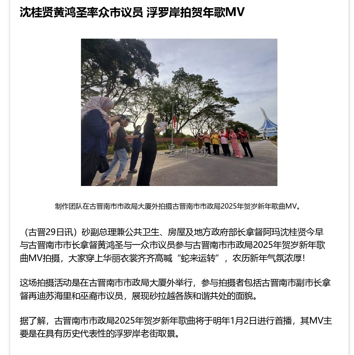沈桂贤黄鸿圣率众市议员 浮罗岸拍贺年歌MV