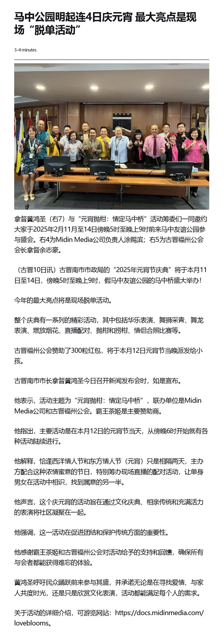 马中公园明起连4日庆元宵 最大亮点是现场“脱单活动”