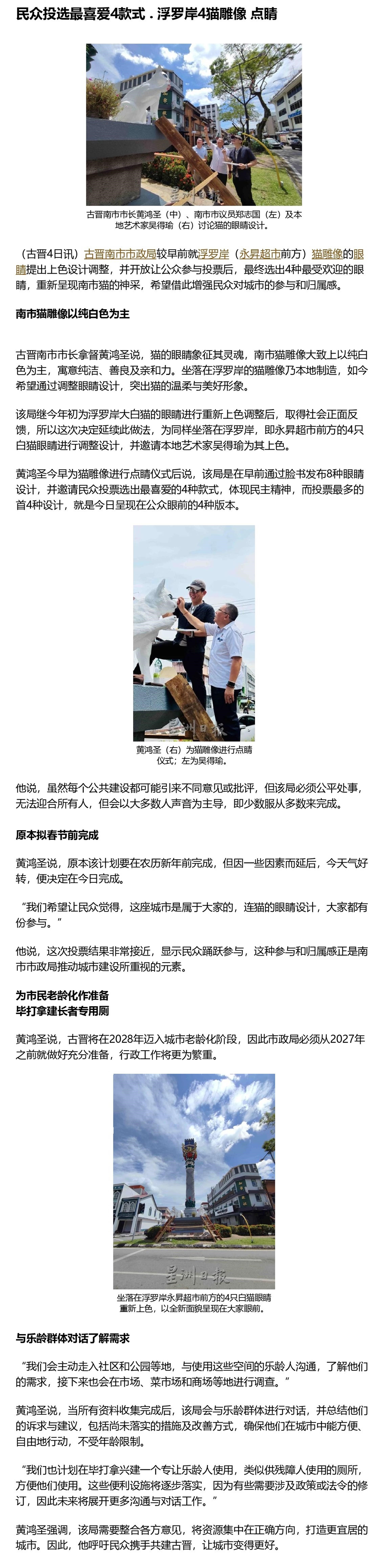 民众投选最喜爱4款式 . 浮罗岸4猫雕像 点睛