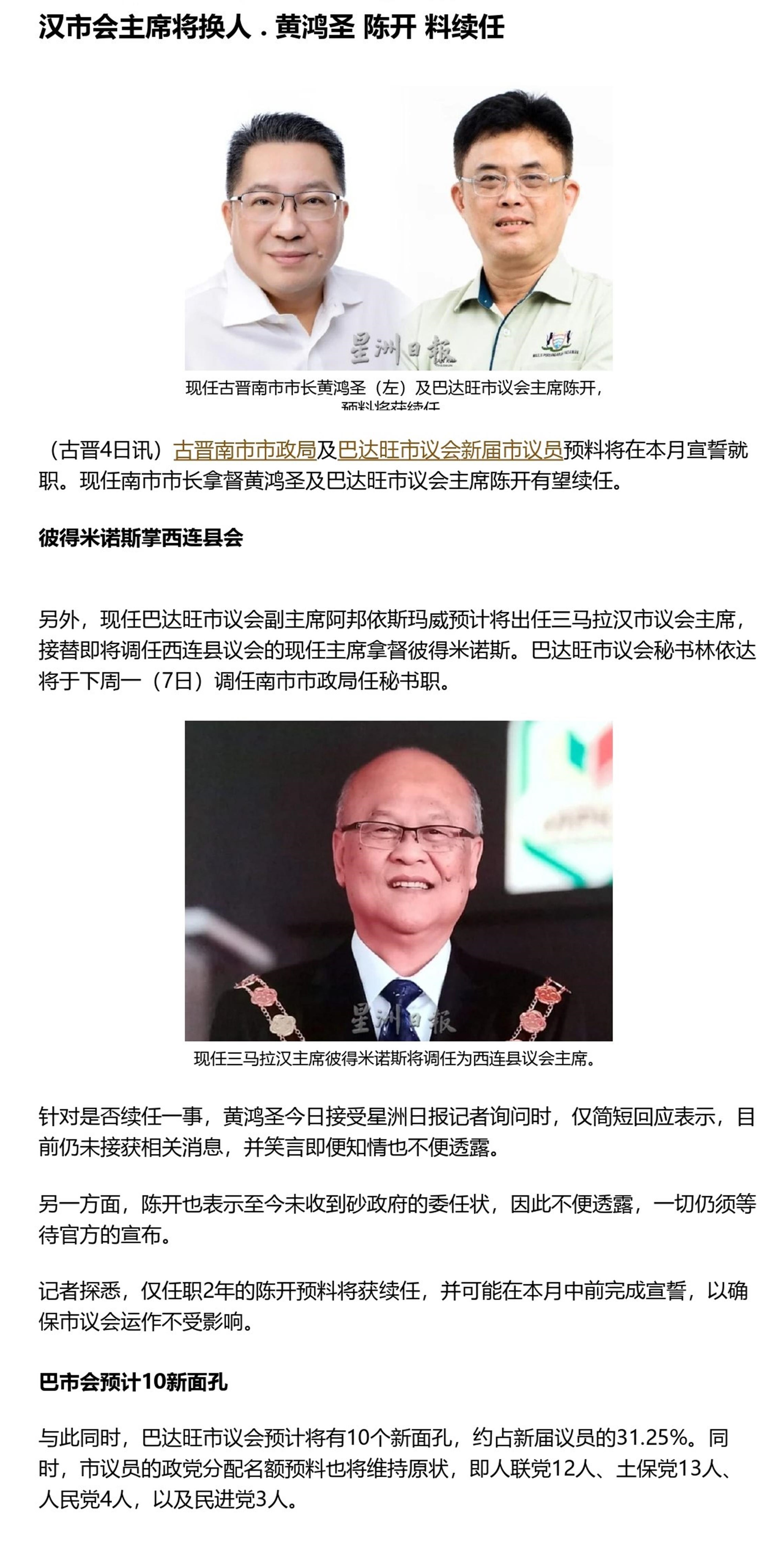 汉市会主席将换人 . 黄鸿圣 陈开 料续任