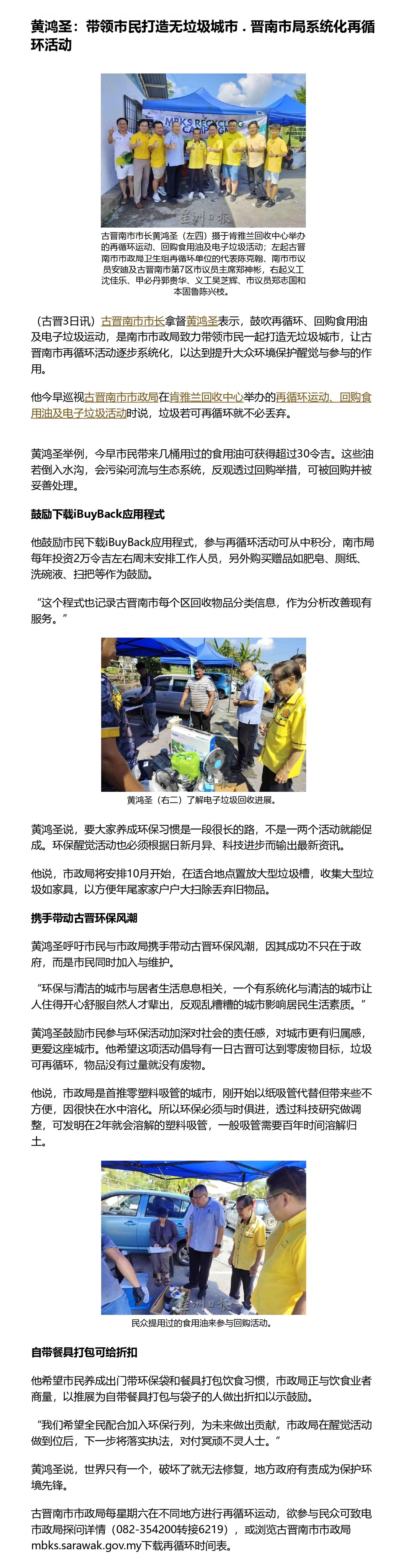 黄鸿圣:带领市民打造无垃圾城市 . 晋南市局系统化再循环活动