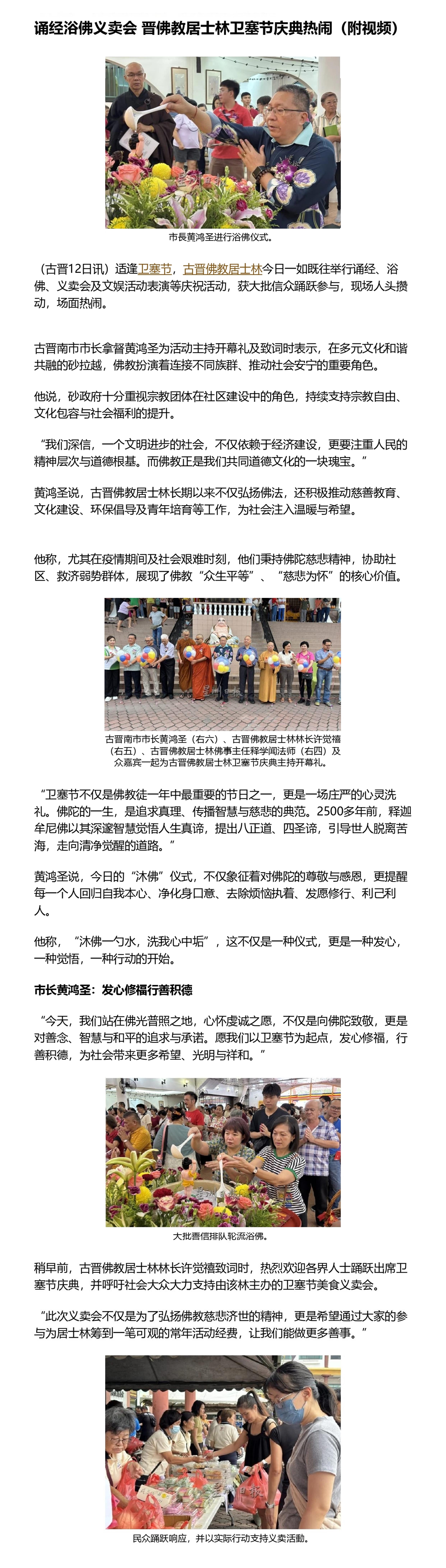 诵经浴佛义卖会 晋佛教居士林卫塞节庆典热闹(附视频)