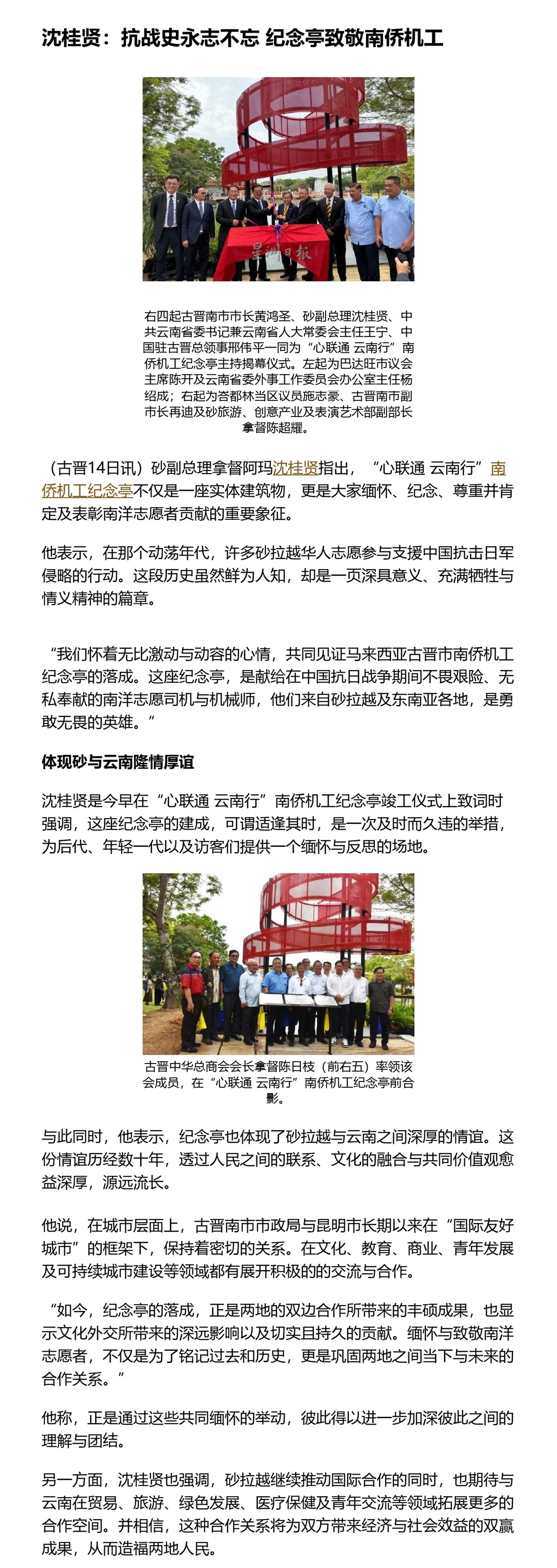 沈桂贤:抗战史永志不忘 纪念亭致敬南侨机工