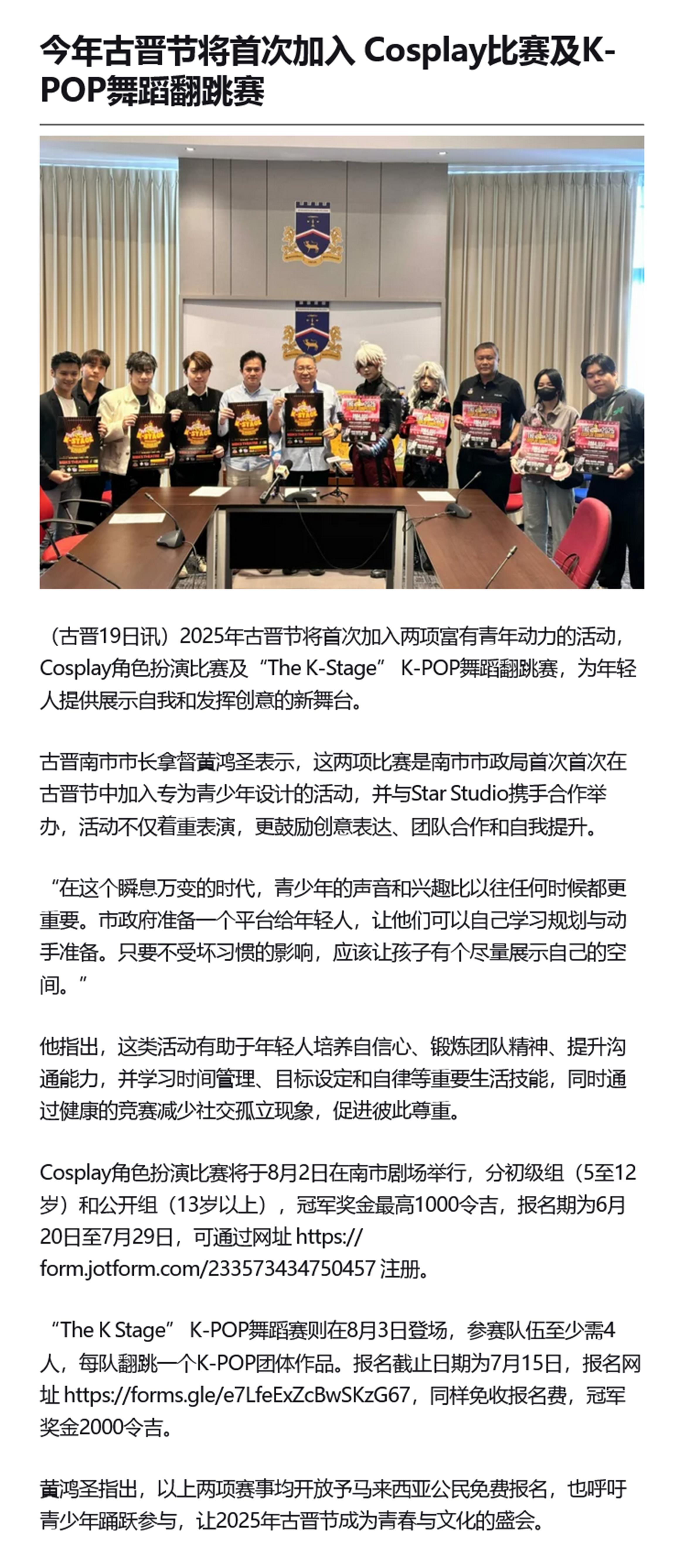 今年古晋节将首次加入 Cosplay比赛及K-POP舞蹈翻跳赛