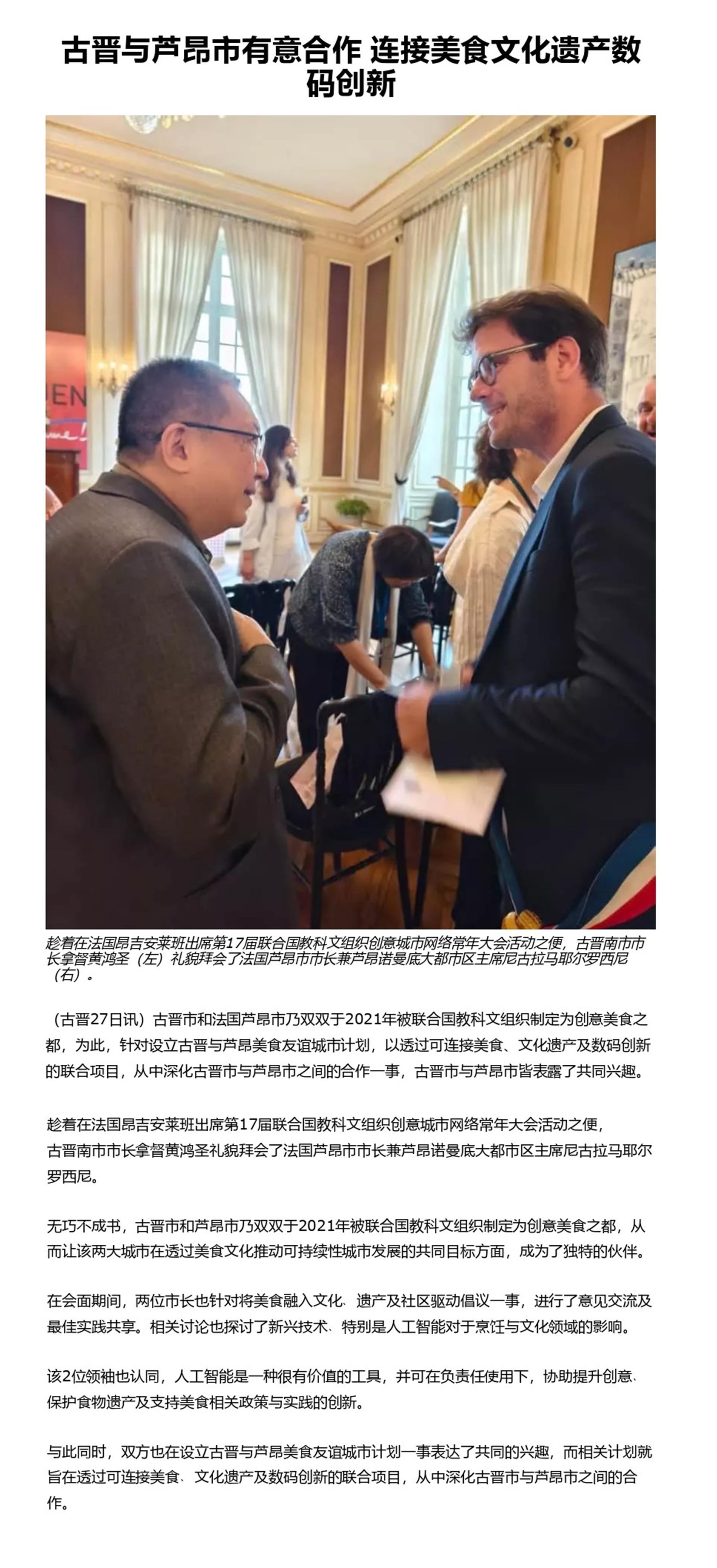 古晋与芦昂市有意合作 连接美食文化遗产数码创新