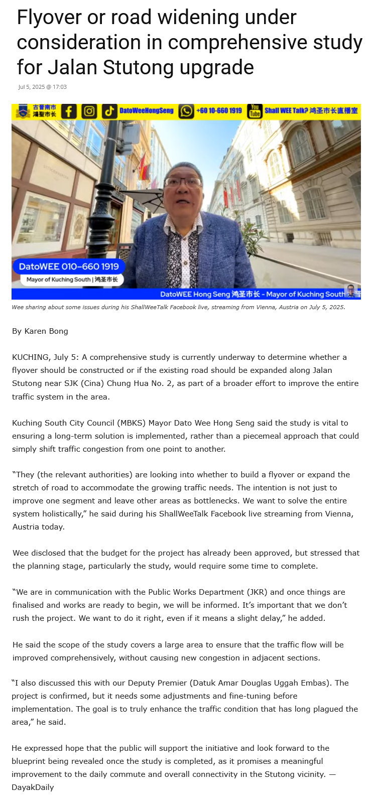 Source of News: https://dayakdaily.com/flyover-or-road-widening-under-consideration-in-comprehensive-study-for-jalan-stutong-upgrade/