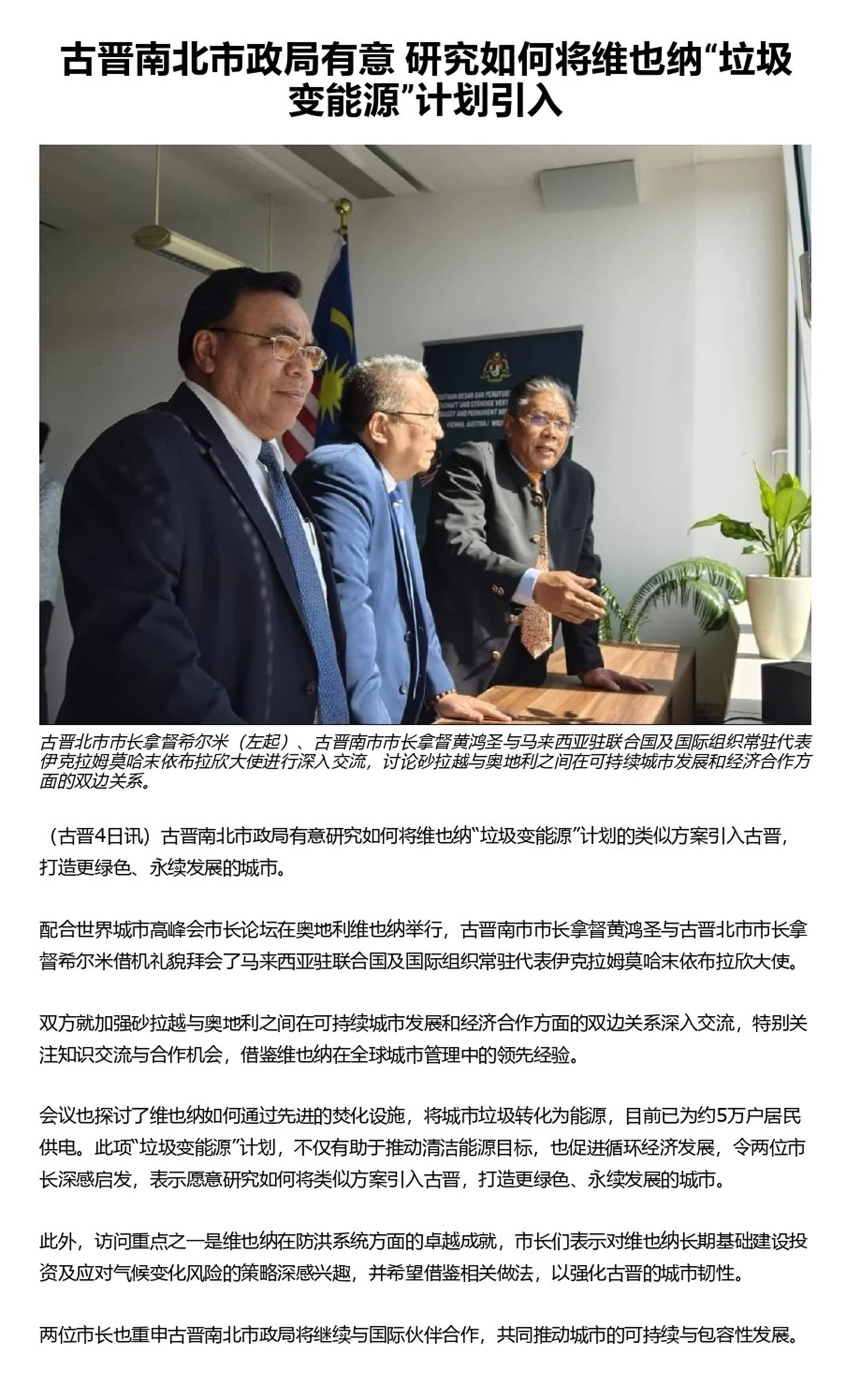 古晋南北市政局有意 研究如何将维也纳“垃圾变能源”计划引入