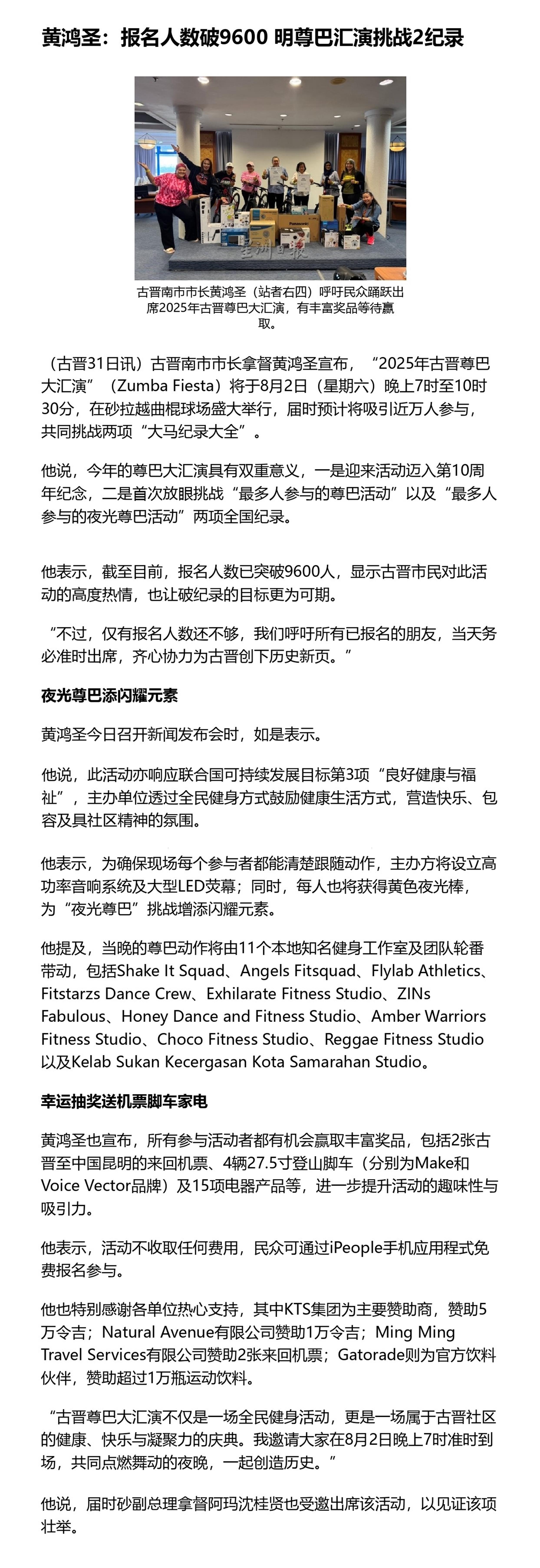 黄鸿圣:报名人数破9600 明尊巴汇演挑战2纪录