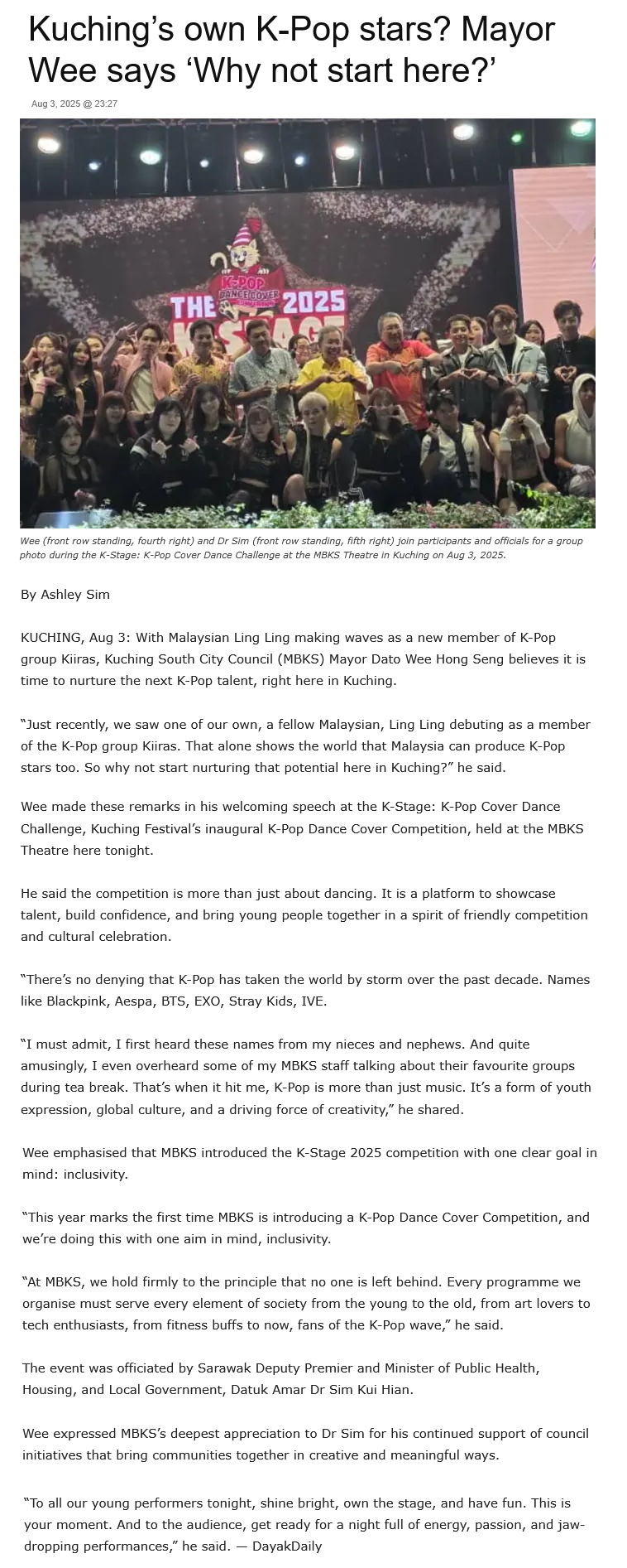 Source of News: https://dayakdaily.com/kuchings-own-k-pop-stars-mayor-wee-says-why-not-start-here/