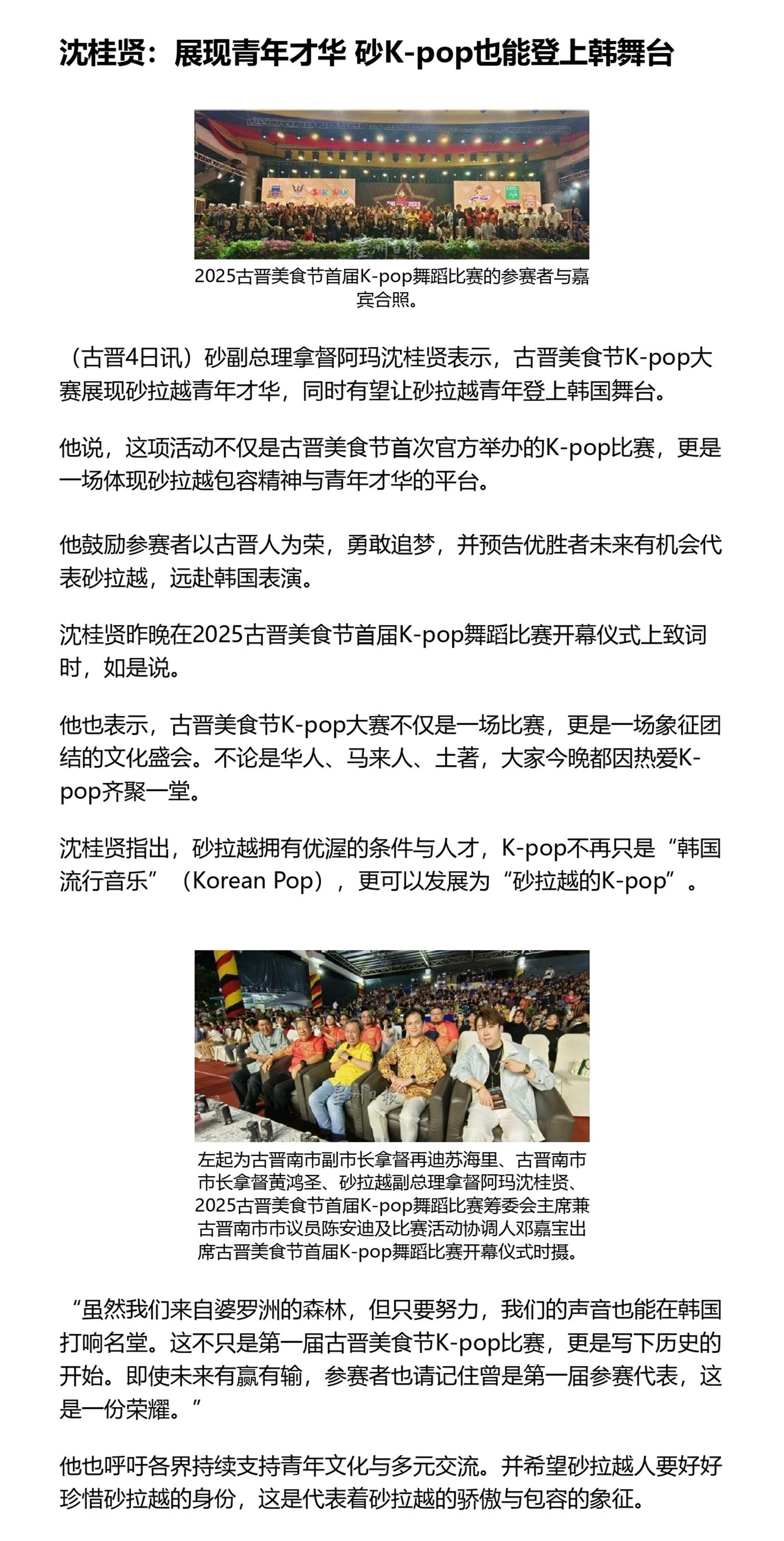 沈桂贤:展现青年才华 砂K-pop也能登上韩舞台