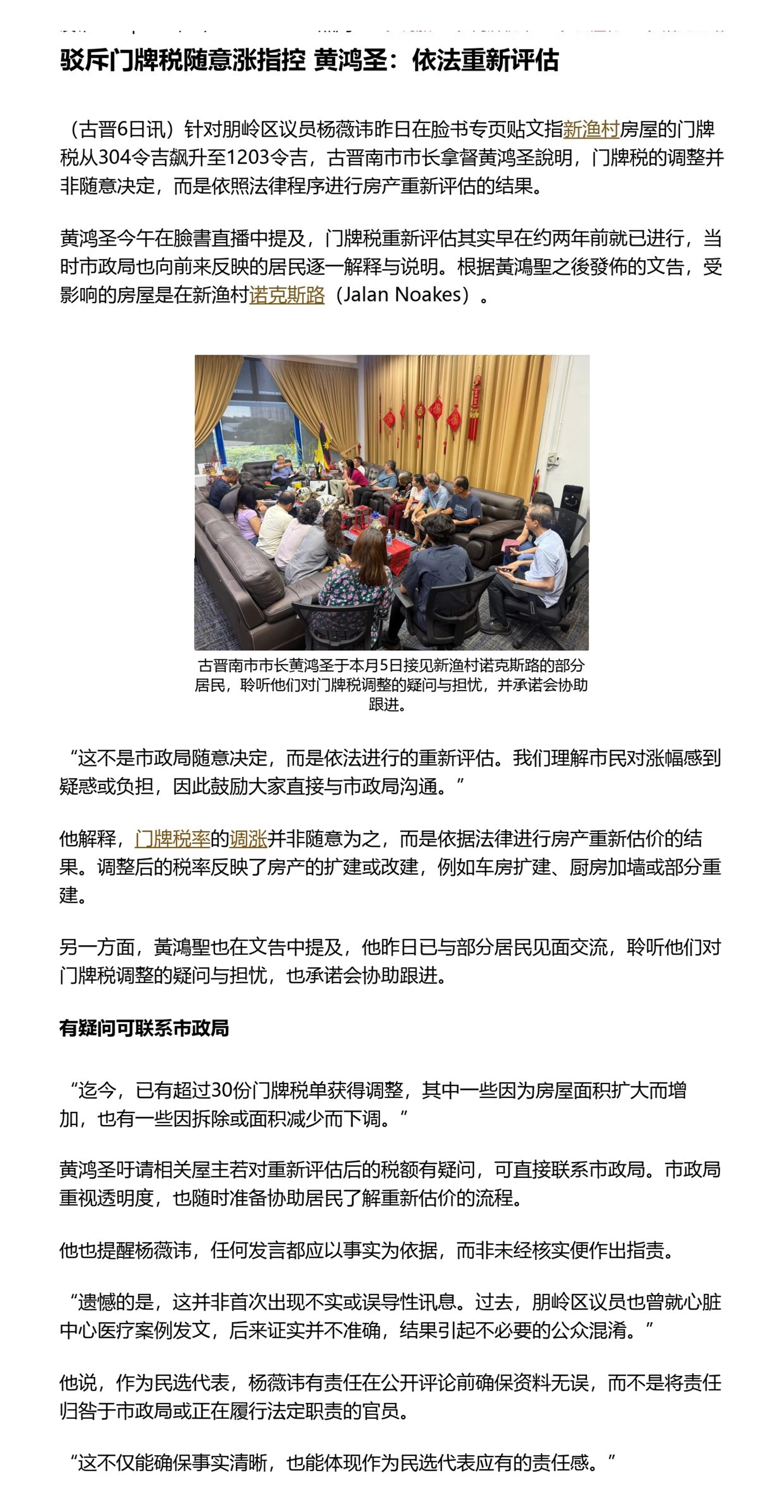 驳斥门牌税随意涨指控 黄鸿圣:依法重新评估
