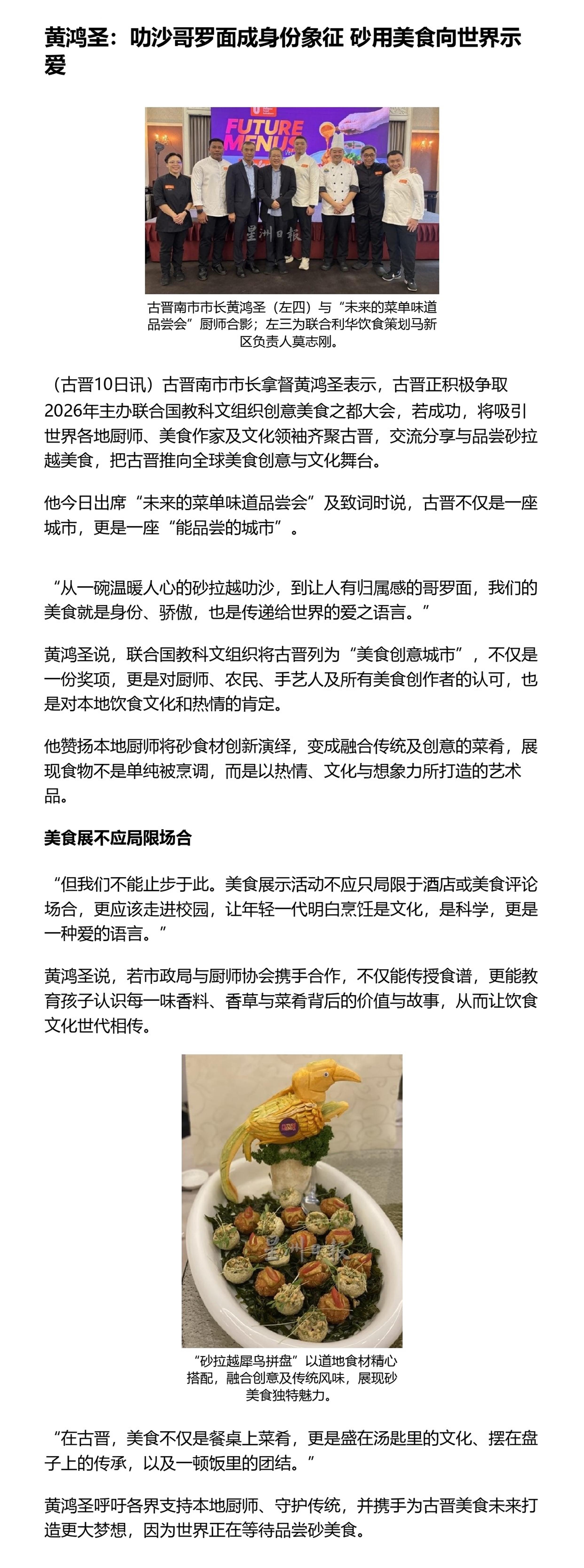 黄鸿圣:叻沙哥罗面成身份象征 砂用美食向世界示爱
