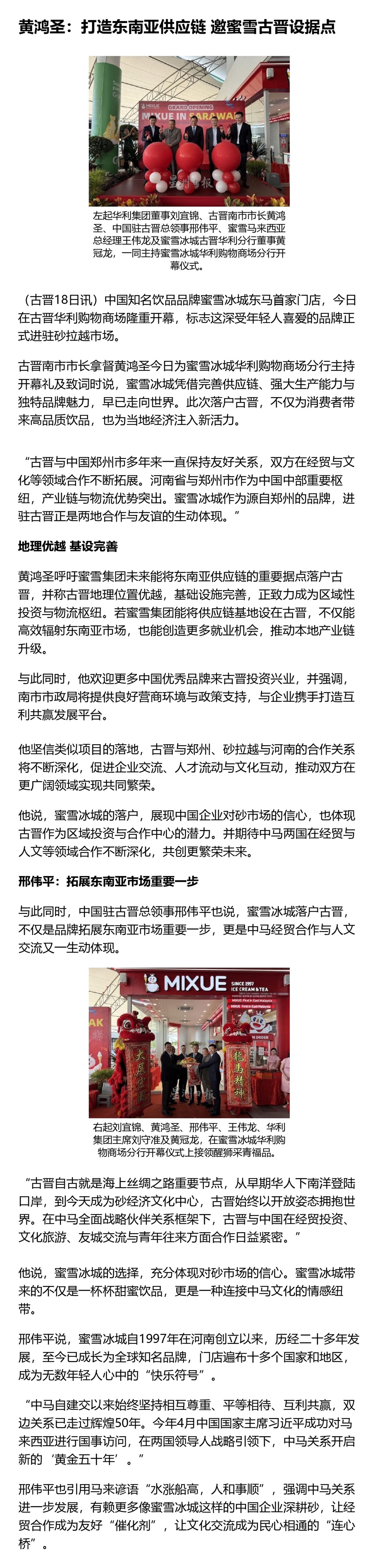 黄鸿圣:打造东南亚供应链 邀蜜雪古晋设据点