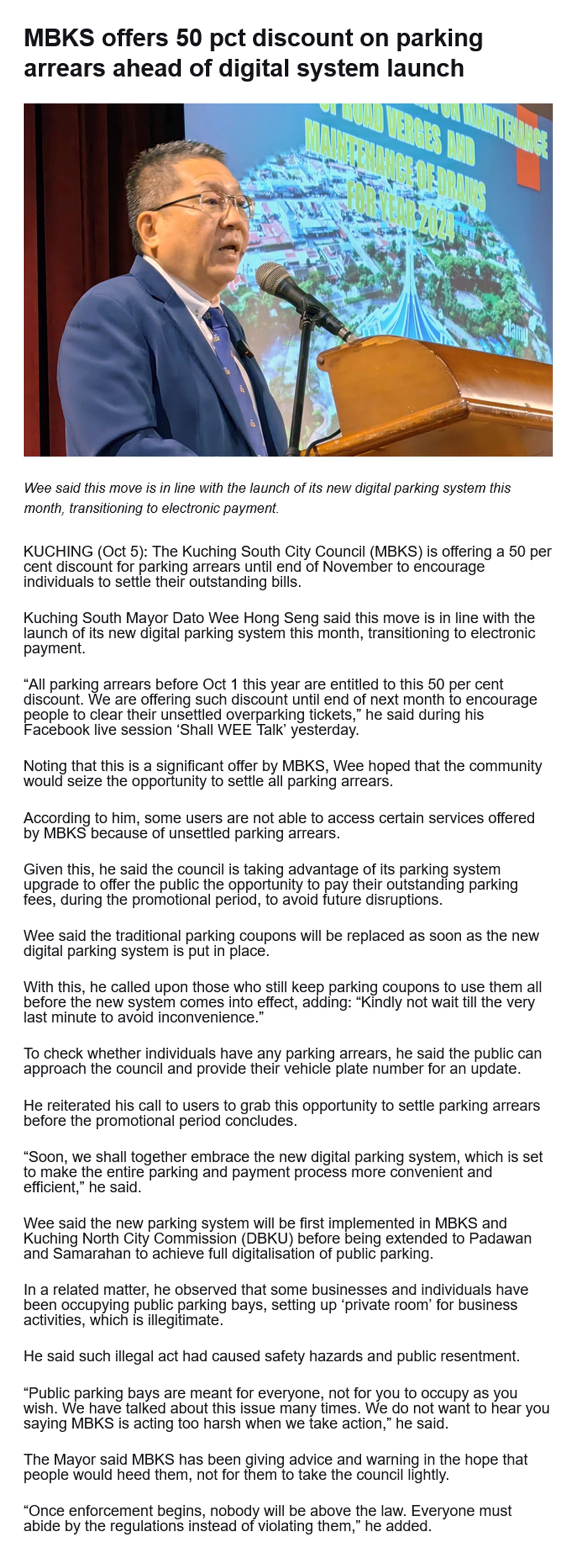 MBKS offers 50 pct discount on parking arrears ahead of digital system launch