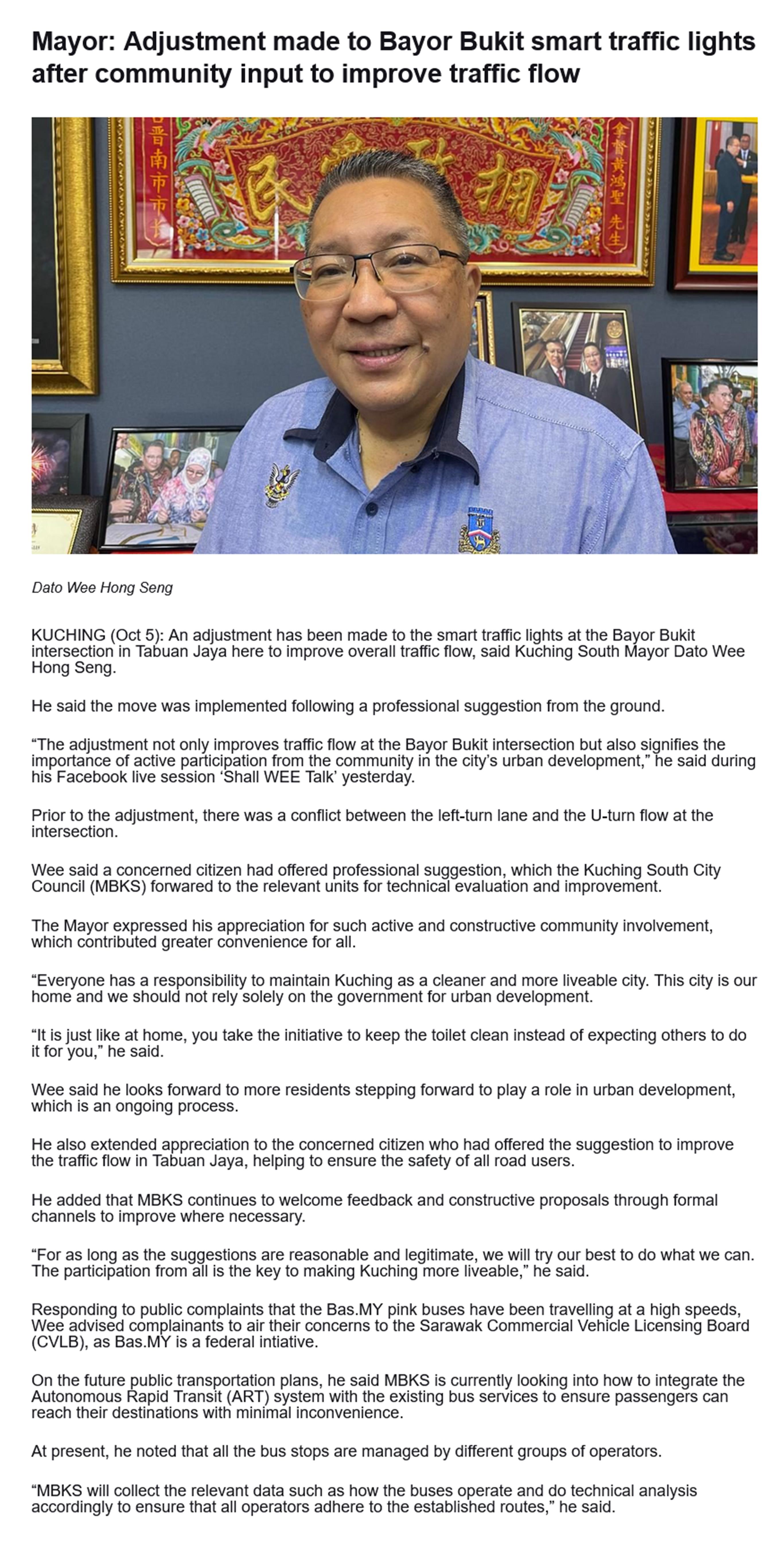 Mayor: Adjustment made to Bayor Bukit smart traffic lights after community input to improve traffic flow