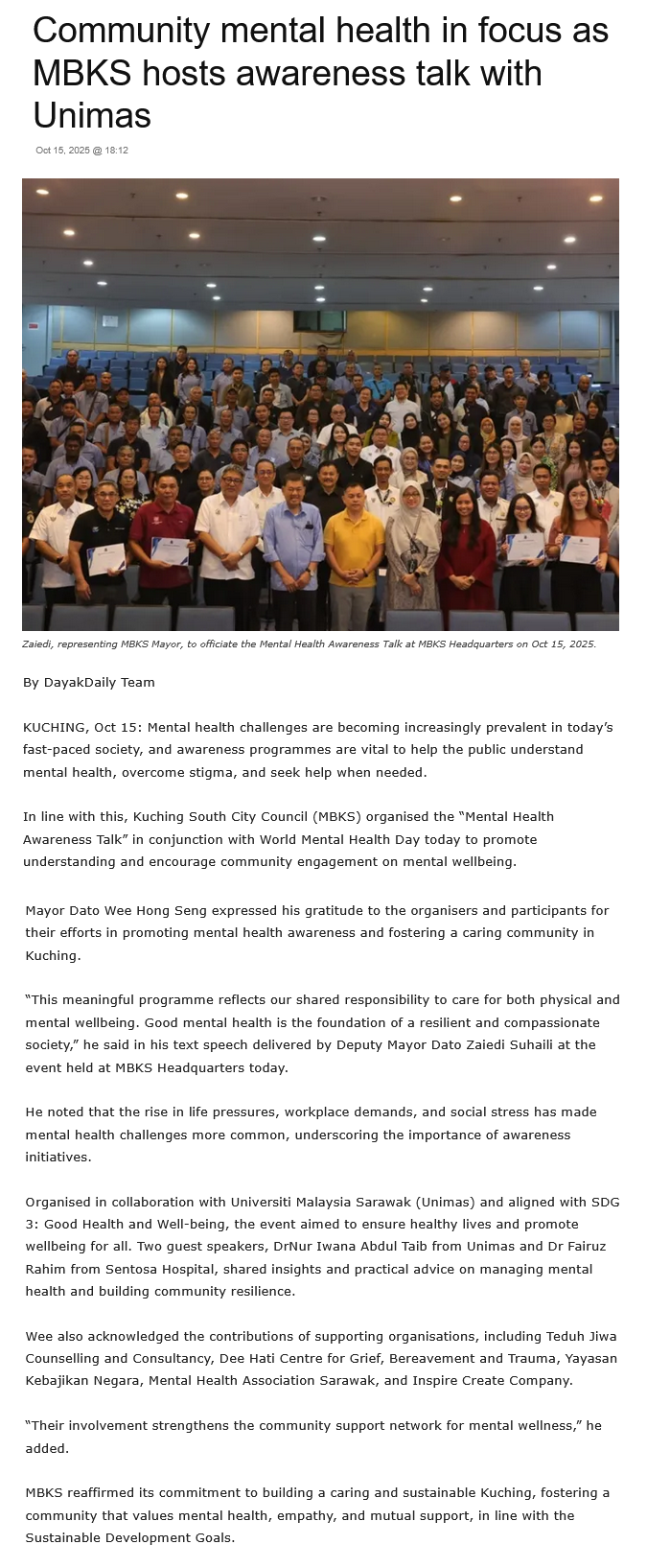 Source of News: https://dayakdaily.com/community-mental-health-in-focus-as-mbks-hosts-awareness-talk-with-unimas/