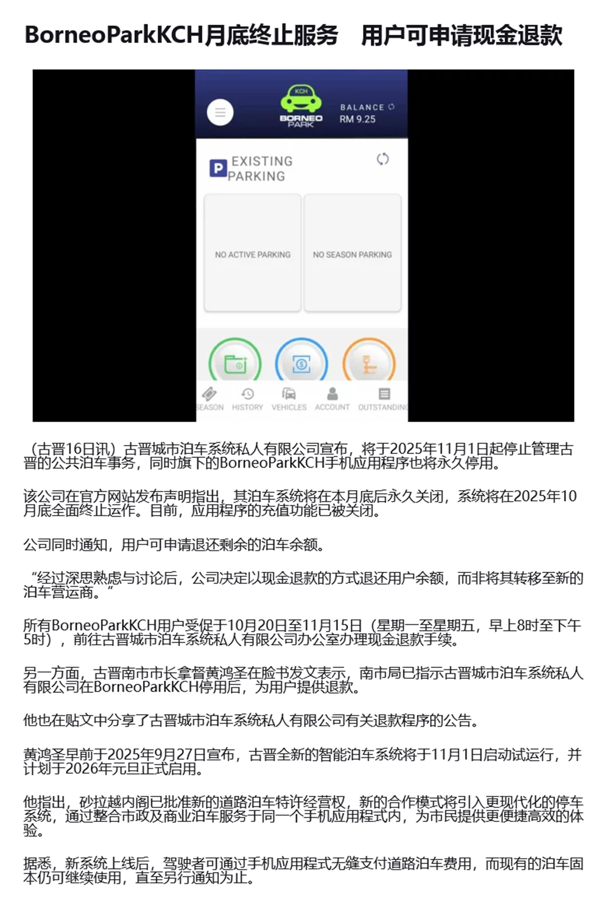 BorneoParkKCH月底终止服务 用户可申请现金退款