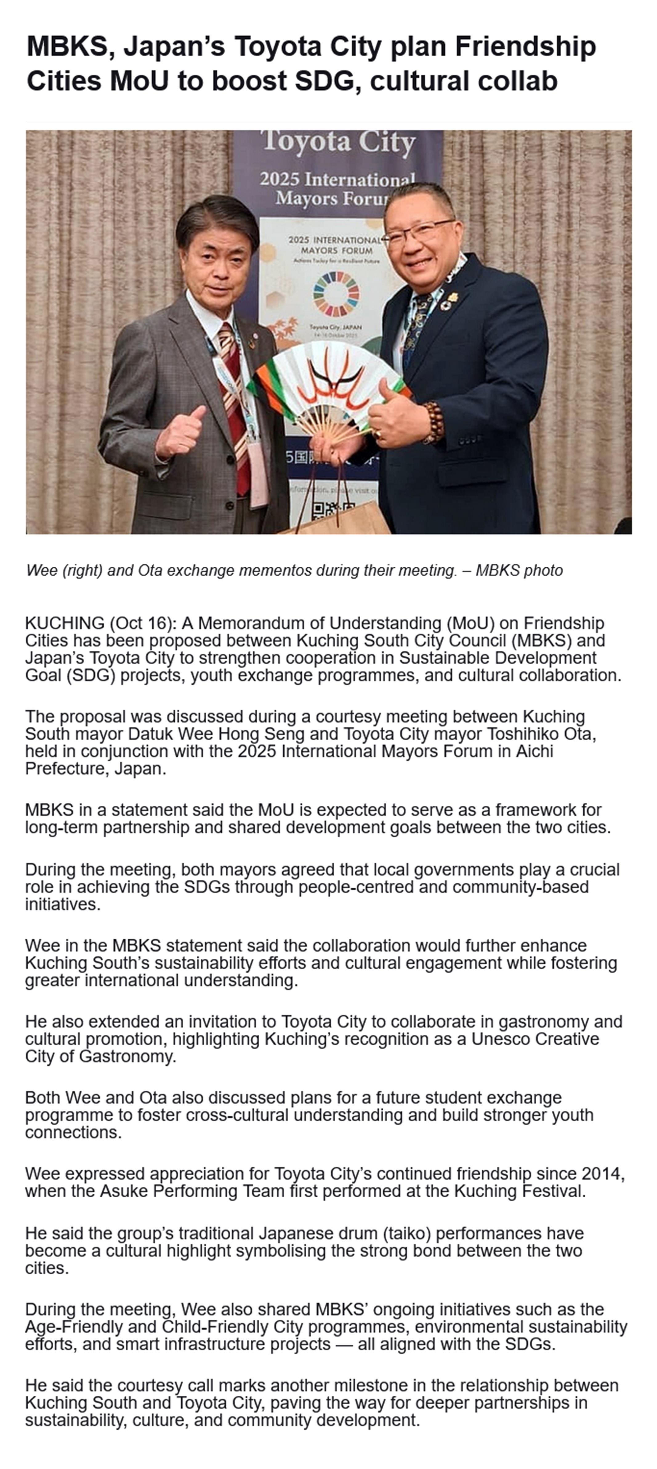 MBKS, Japan’s Toyota City plan Friendship Cities MoU to boost SDG, cultural collab