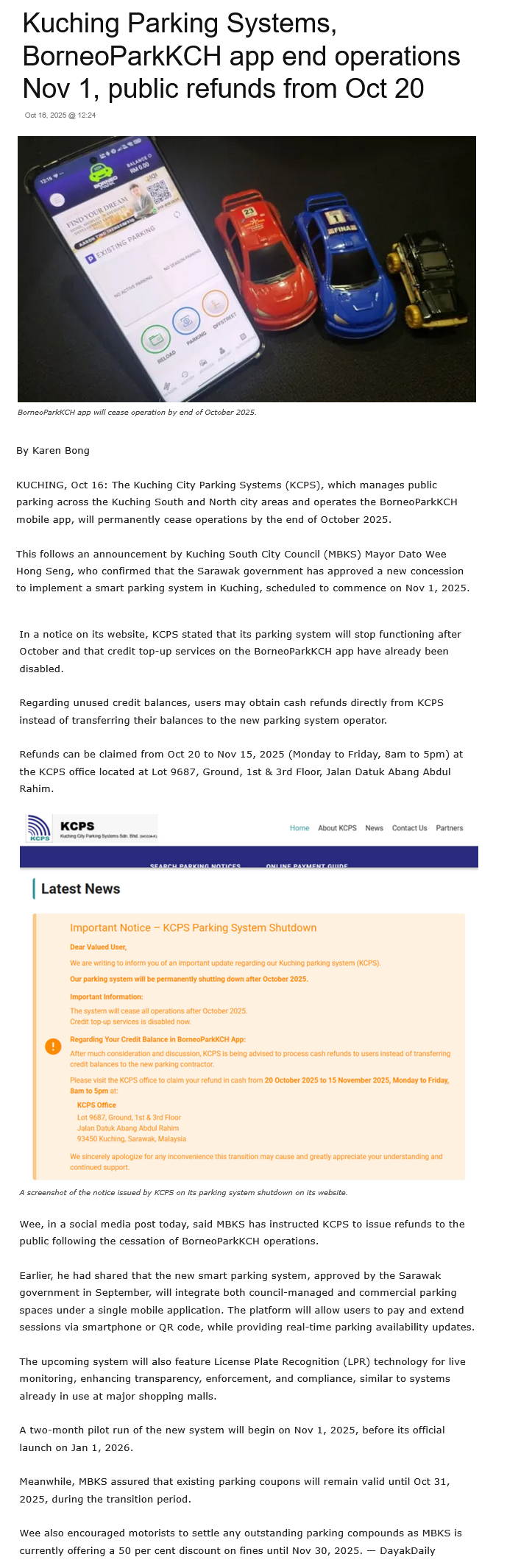 Source of News: https://dayakdaily.com/kuching-parking-systems-borneoparkkch-app-end-operations-nov-1-public-refunds-from-oct-20/