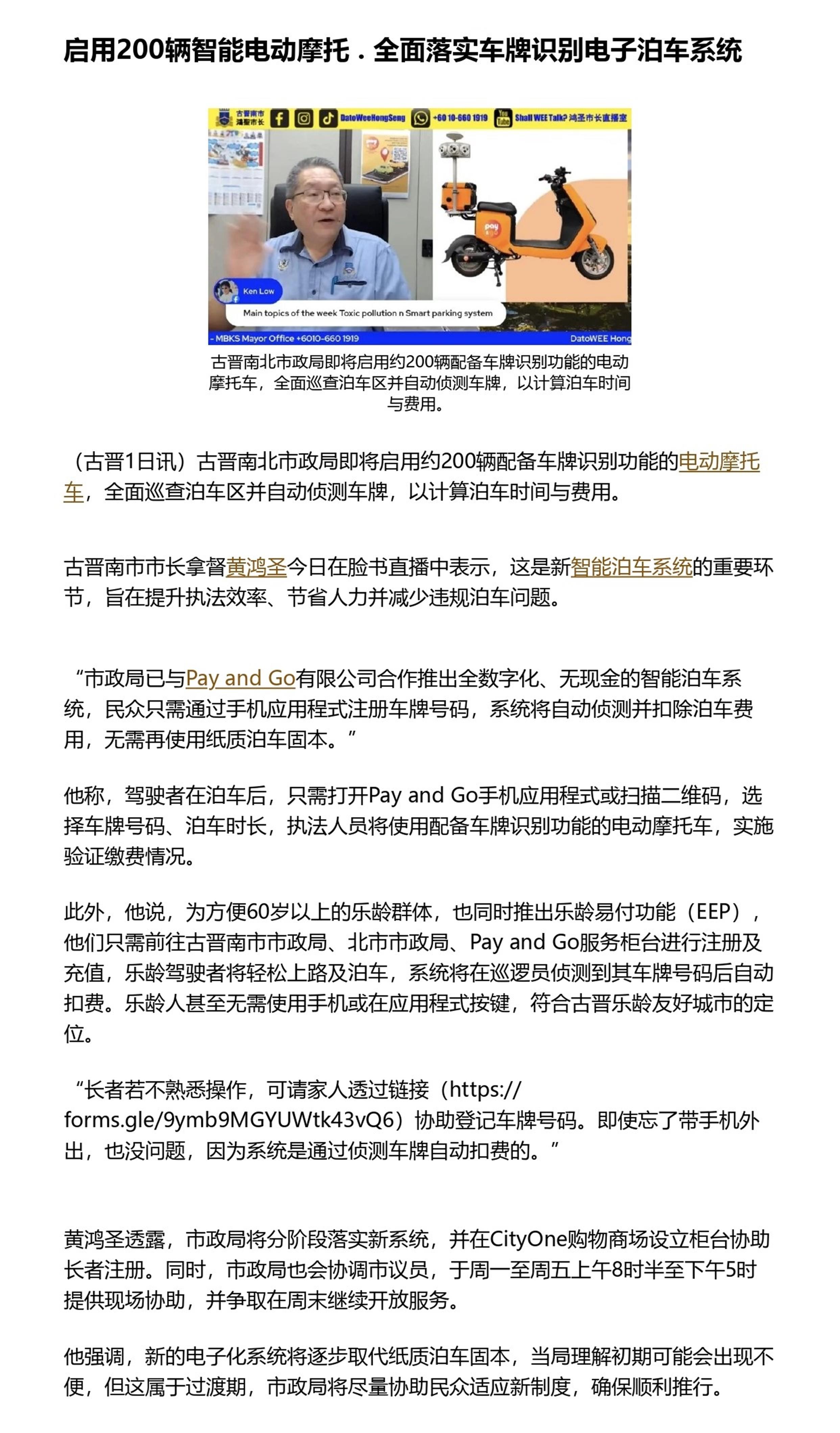 启用200辆智能电动摩托 . 全面落实车牌识别电子泊车系统
