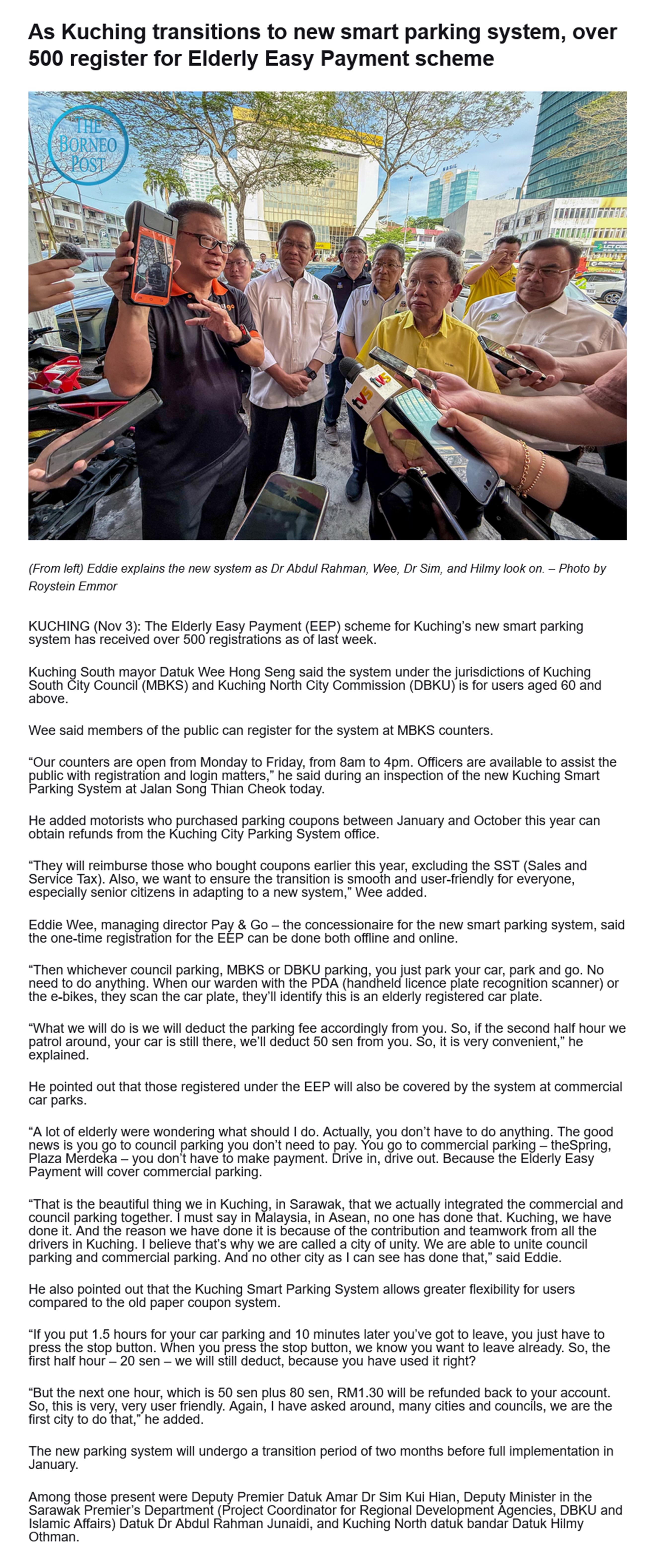 As Kuching transitions to new smart parking system, over 500 register for Elderly Easy Payment scheme