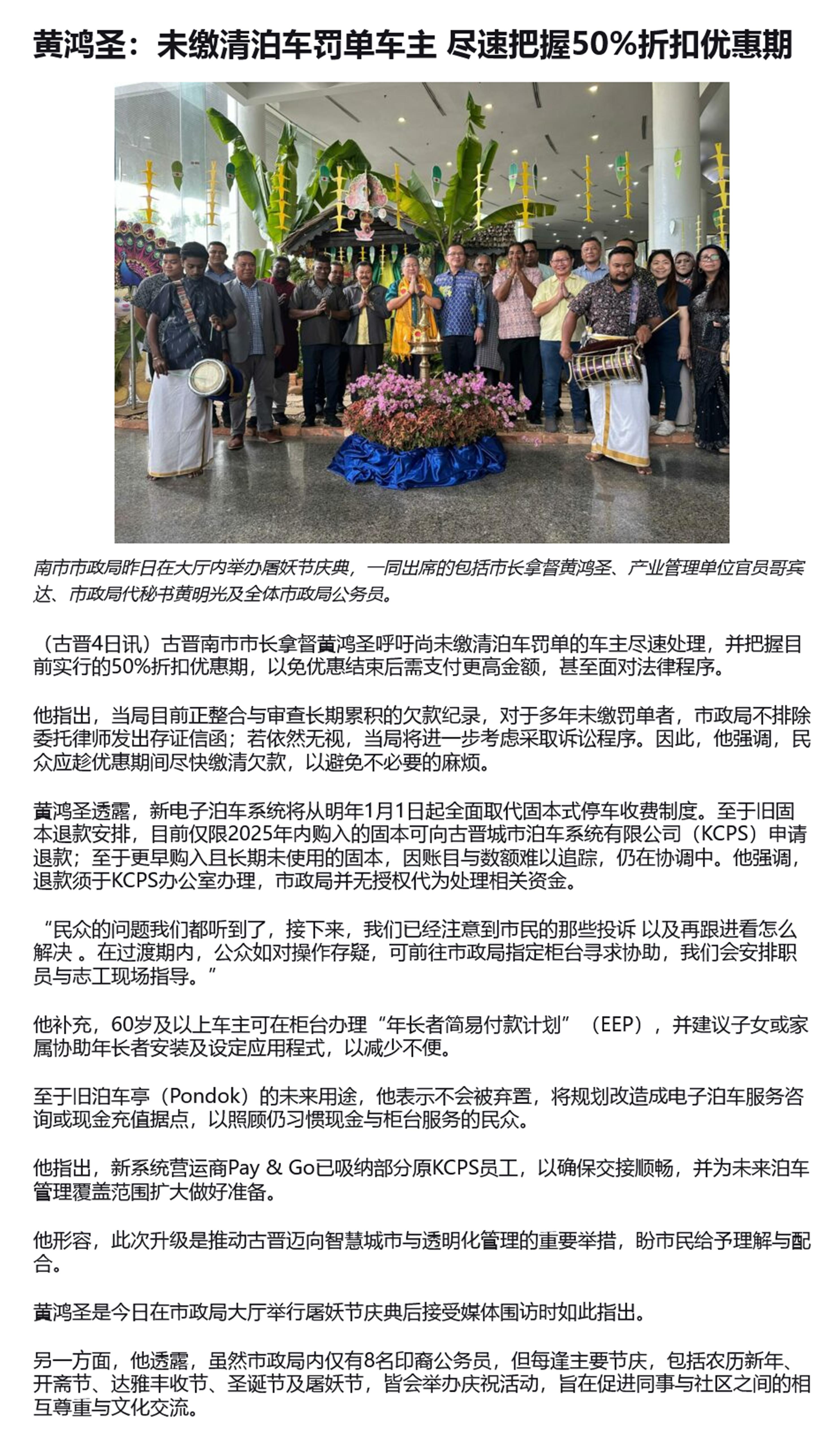 黄鸿圣:未缴清泊车罚单车主 尽速把握50%折扣优惠期