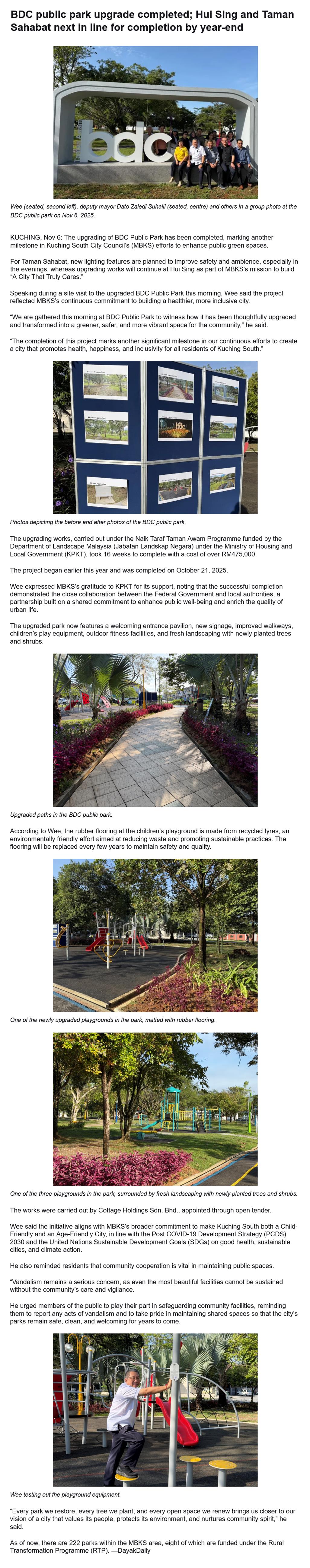 BDC public park upgrade completed; Hui Sing and Taman Sahabat next in line for completion by year-end