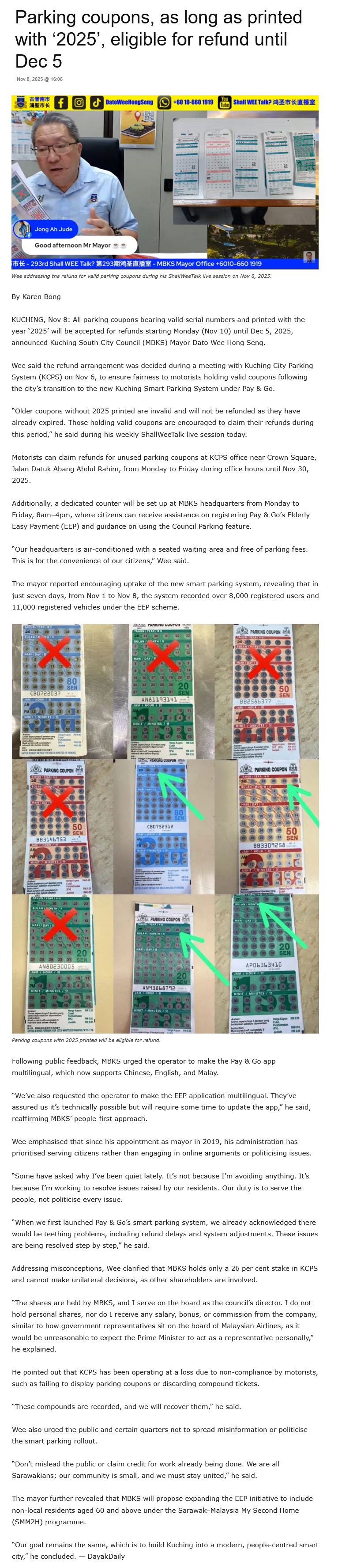 Source of News: https://dayakdaily.com/parking-coupons-as-long-as-printed-with-2025-eligible-for-refund-until-dec-5/