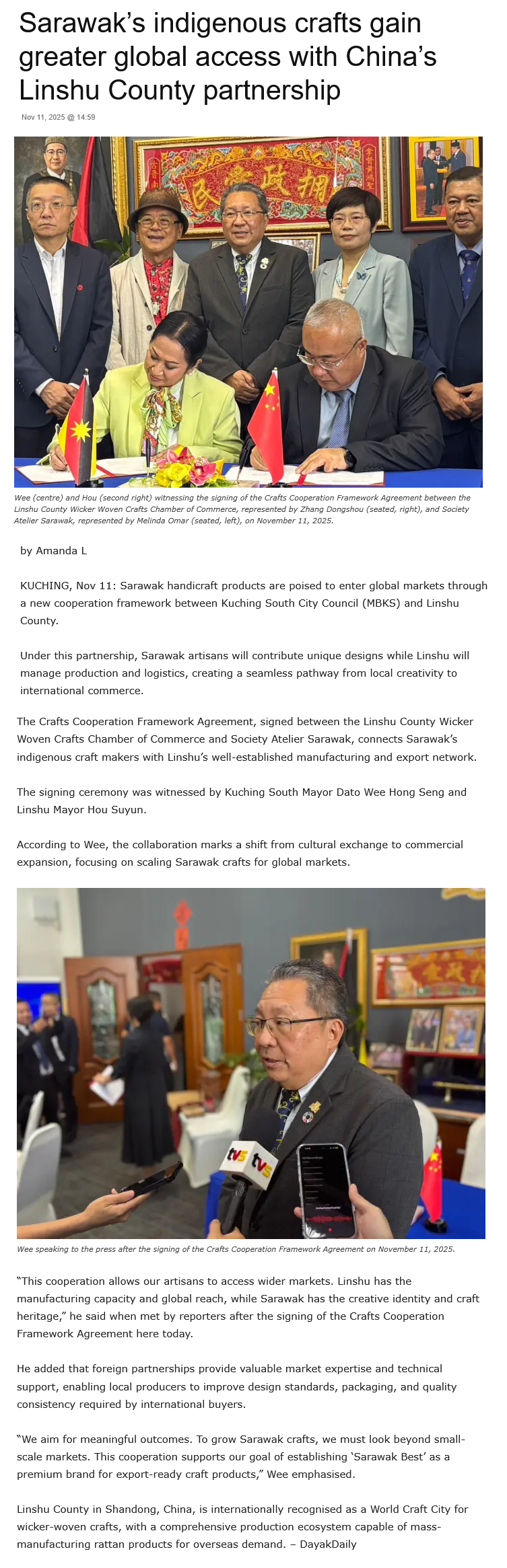 Source of News: https://dayakdaily.com/sarawaks-indigenous-crafts-gain-greater-global-access-with-chinas-linshu-county-partnership/
