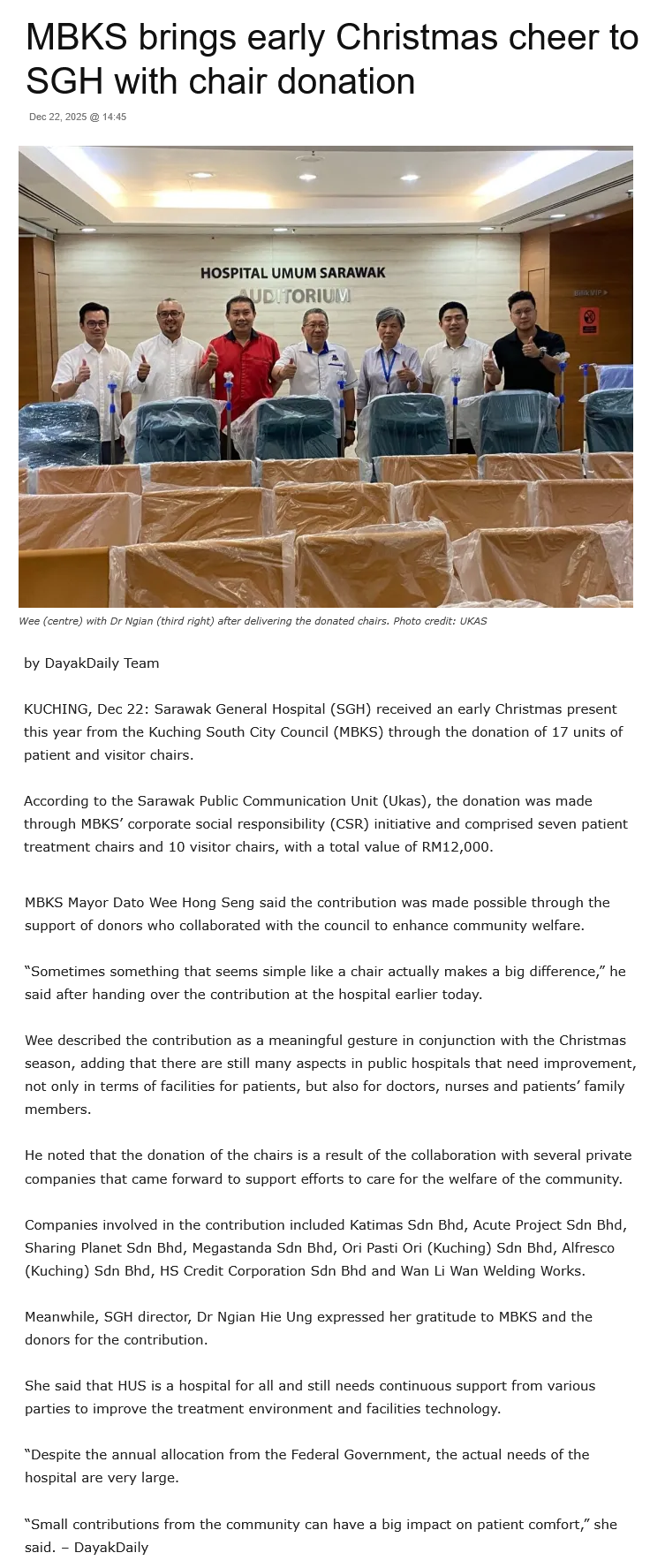 Source of News: https://dayakdaily.com/mbks-brings-early-christmas-cheer-to-sgh-with-chair-donation/