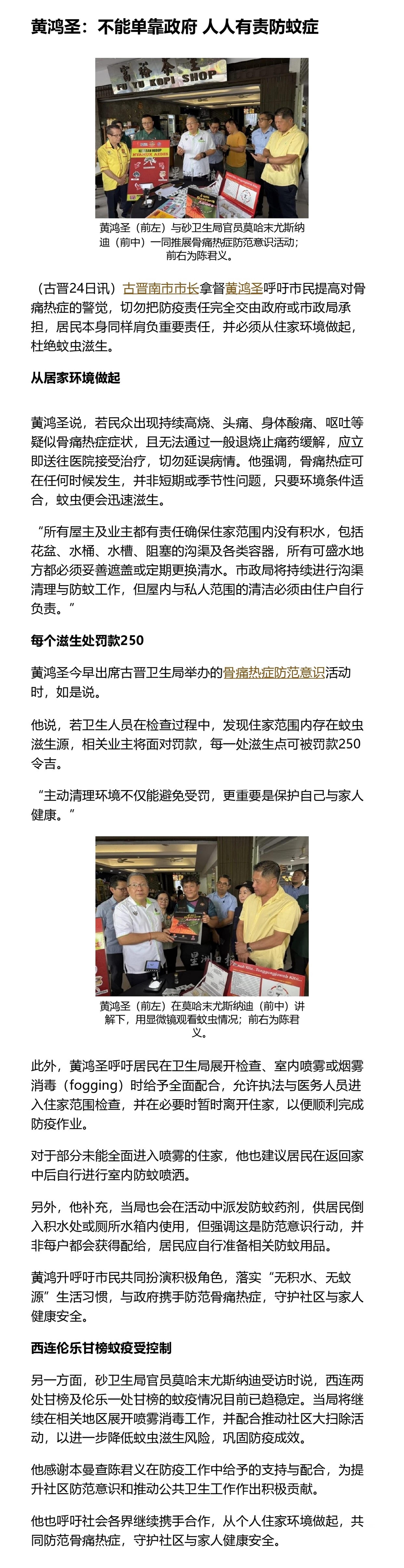 黄鸿圣:不能单靠政府 人人有责防蚊症