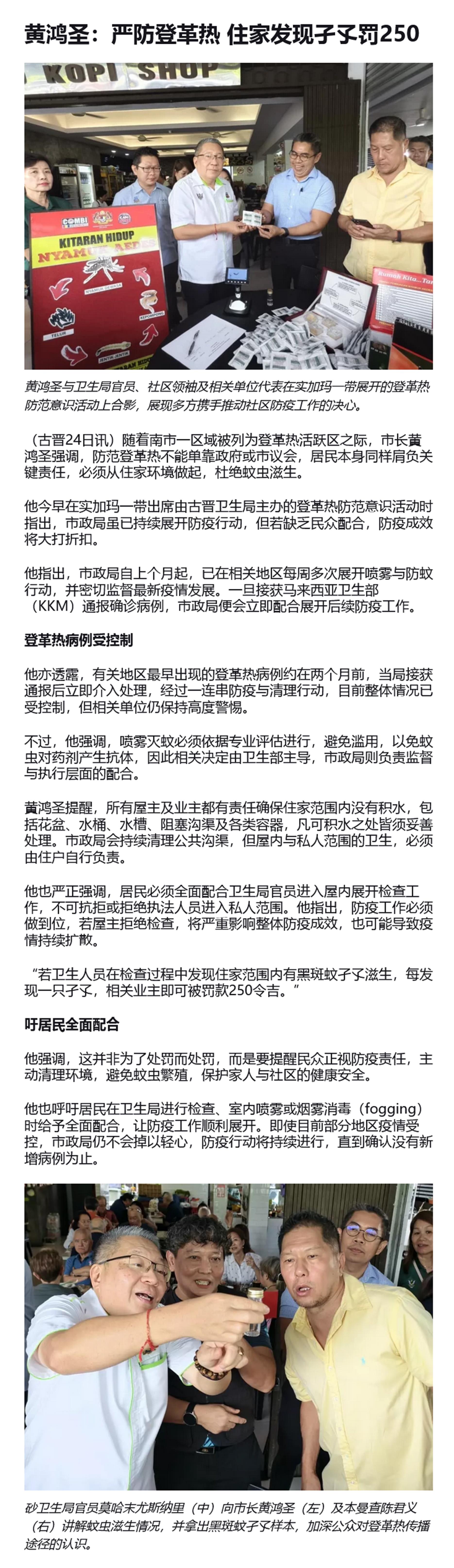黄鸿圣:严防登革热 住家发现孑孓罚250